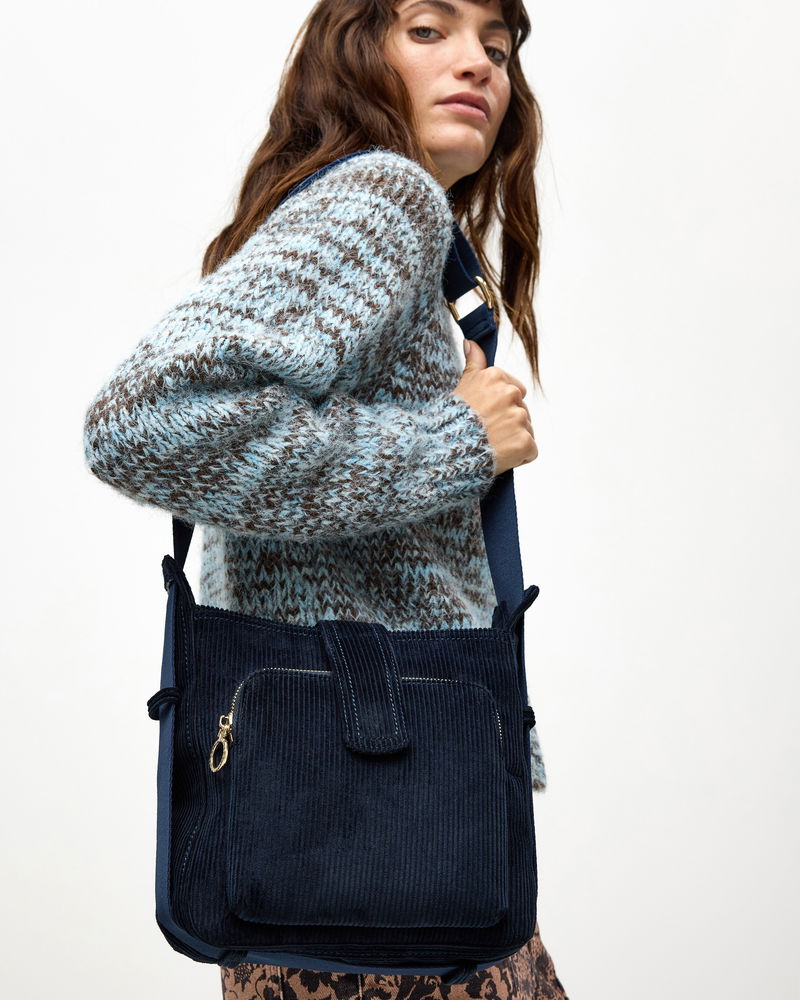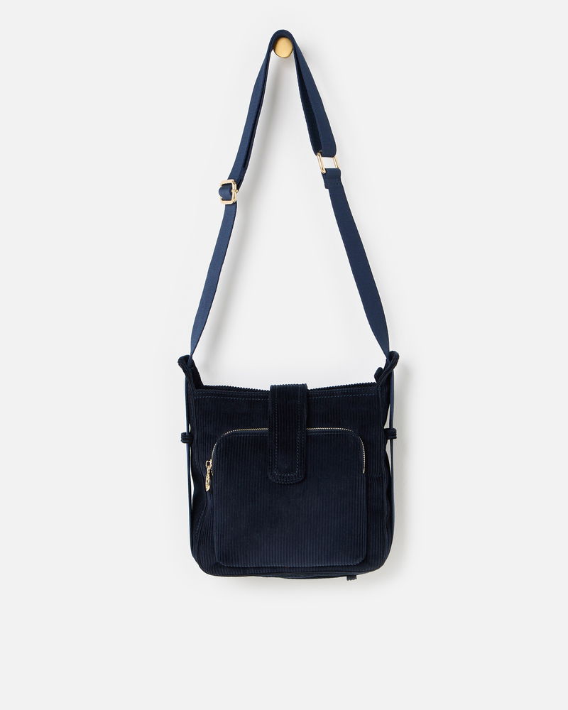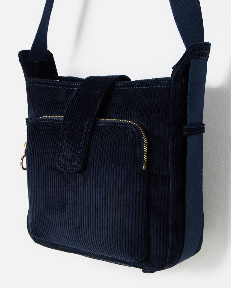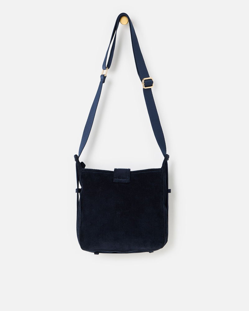 Dotty Navy Blue Corduroy Fold Over Crossbody Bag