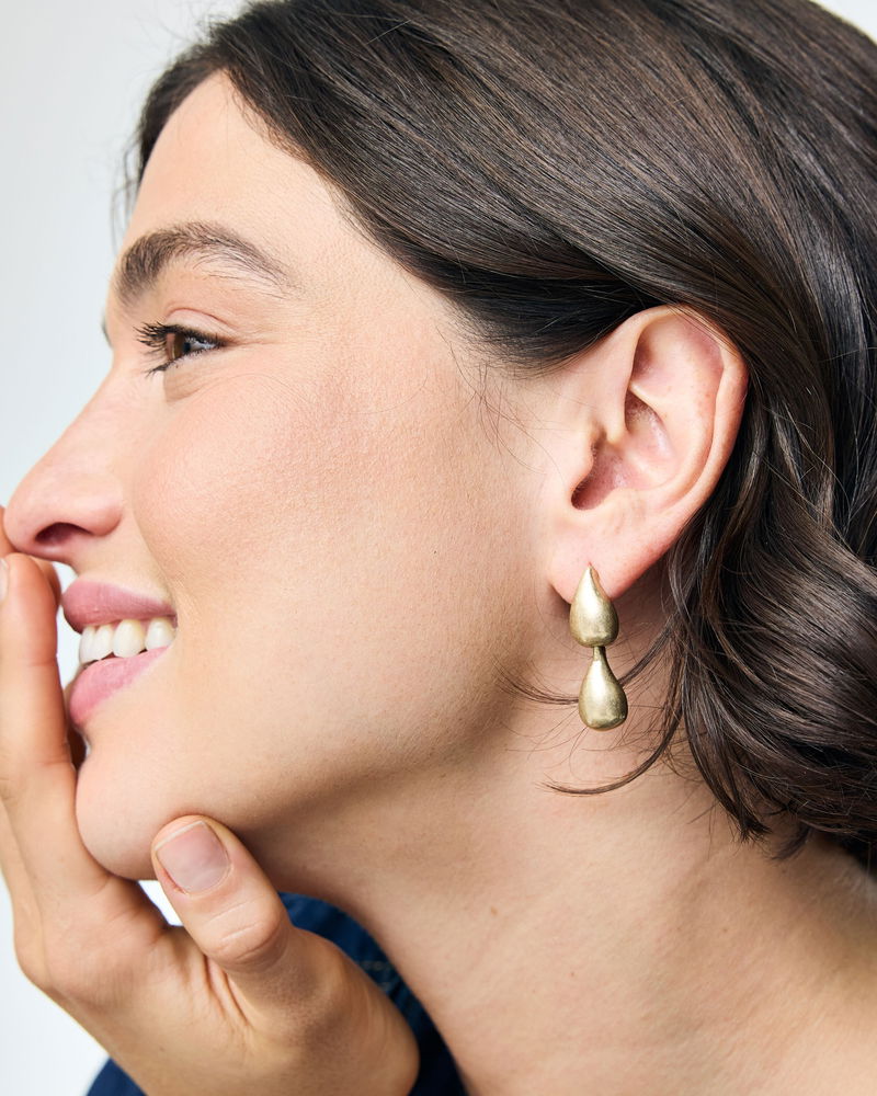 Elis Tiered Teardrop Gold Tone Drop Earrings