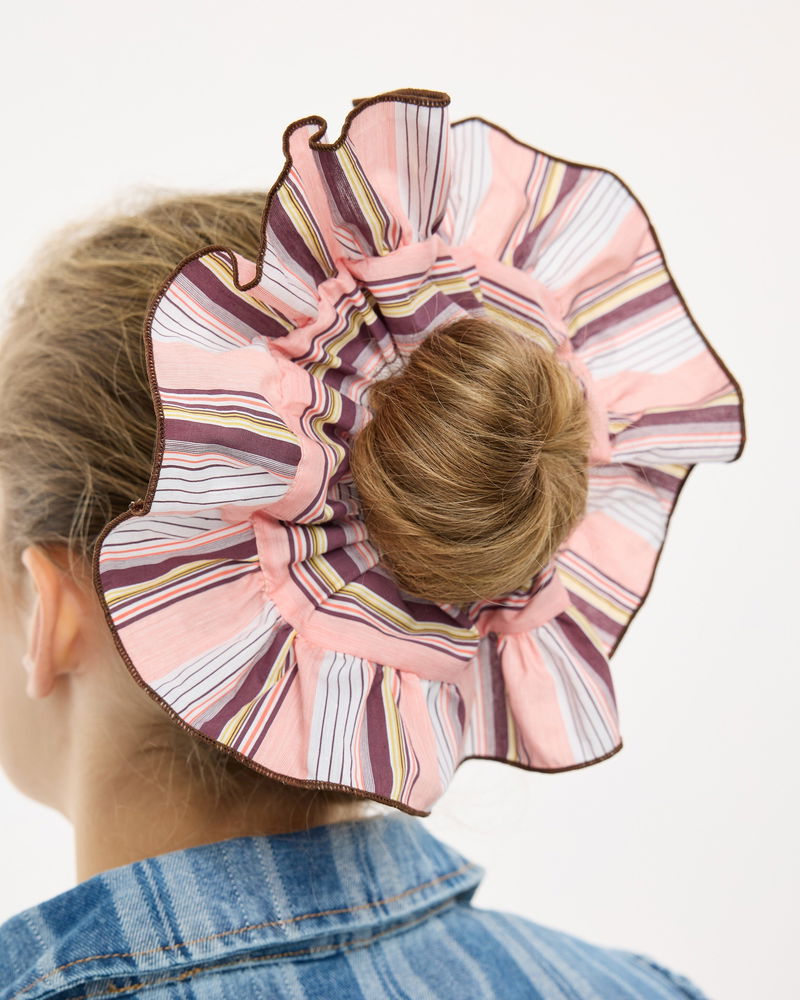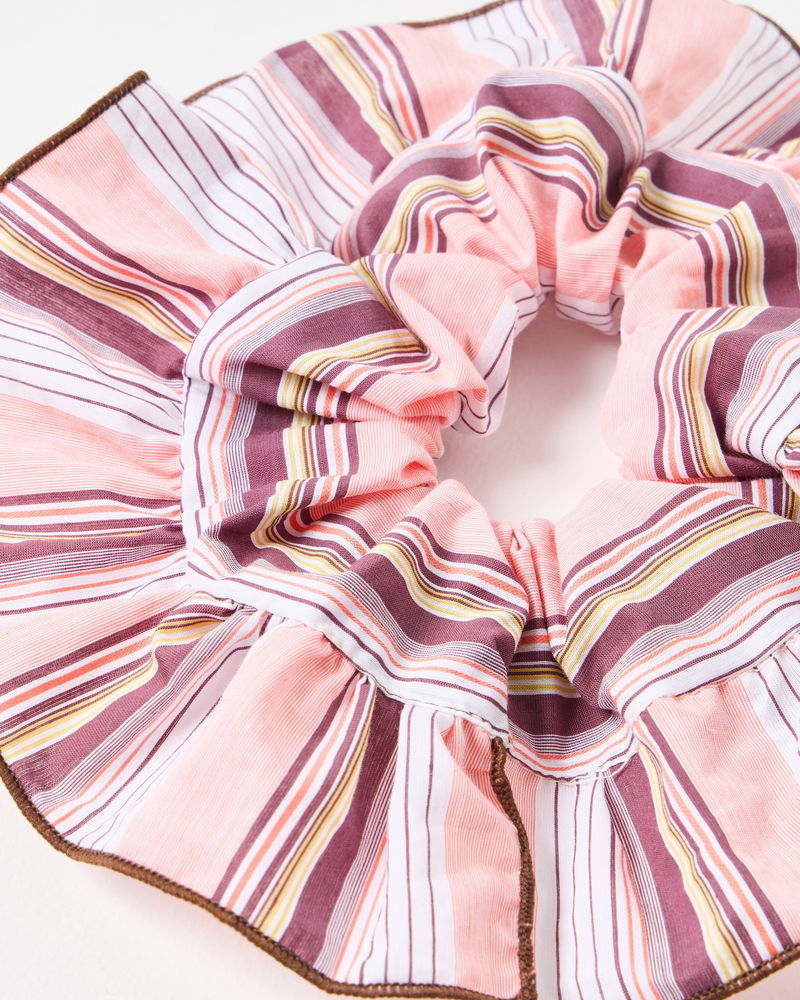 Elowyn Pink & Brown Striped Hair Scrunchie