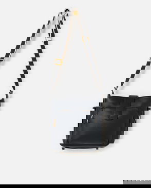Ecru cream crossbody bag with an exterior zipped pocket and black woven strap.