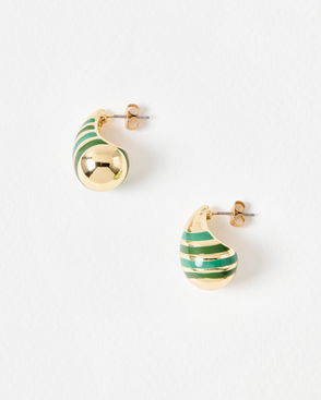Combining teardrop shaped glass beads in clear and deep-green tones with gold-toned frames, these light-catching stud earrings lends an elegant touch to your lobes.
