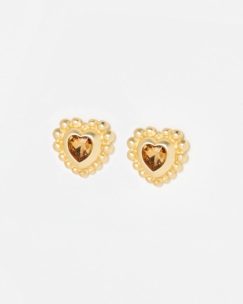 Delicate yet eye-catching, these gold-tone heart studs feature a brown stone at the centre and rounded ball detailing along the outer edge for a subtle dimensional effect.
