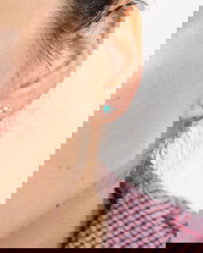 Dainty silver stud earrings with a teardrop design and opalite stone.
