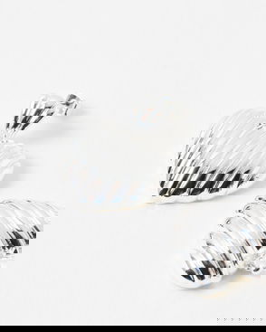 Add a little love to your earring collection with this pair. In a shiny silver and heart profile, these stud earrings feature a series of intricately etched ridges for a textured finish.