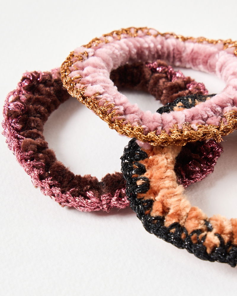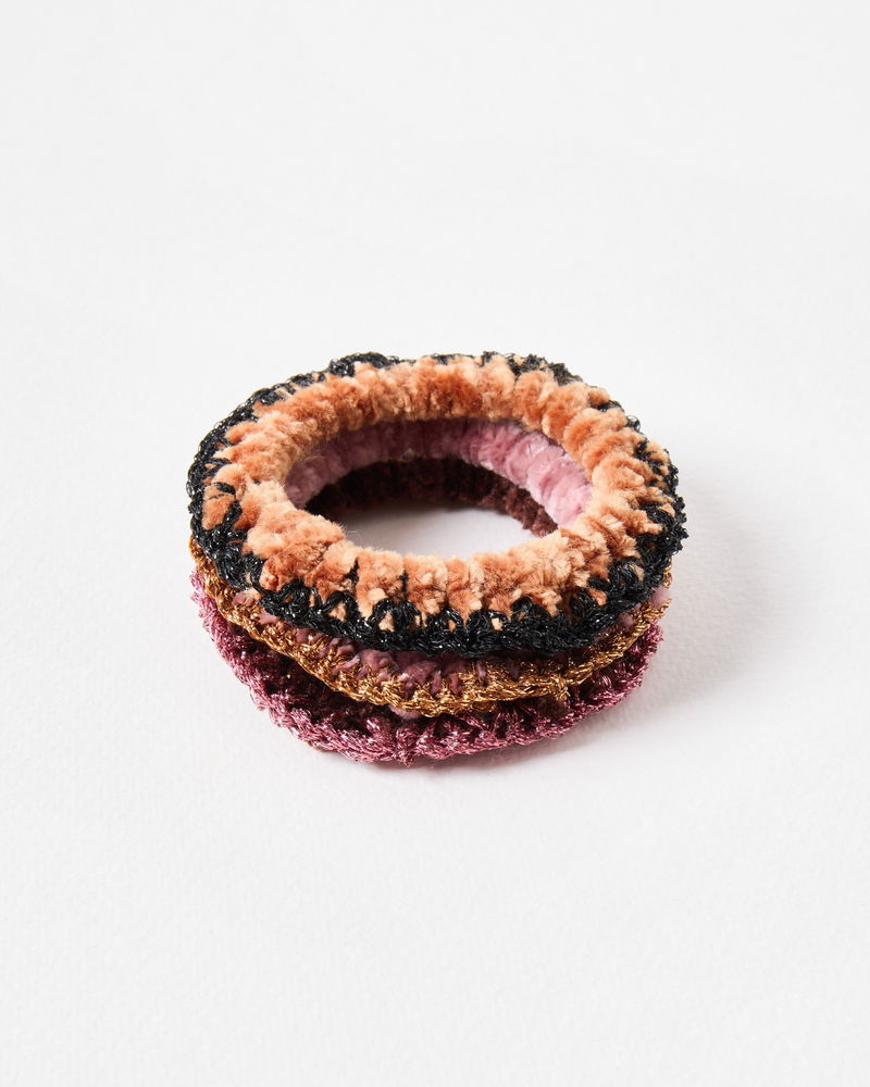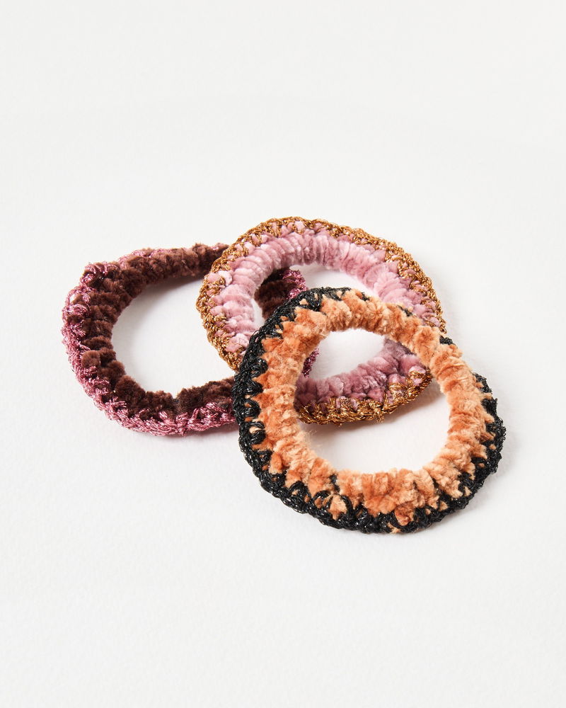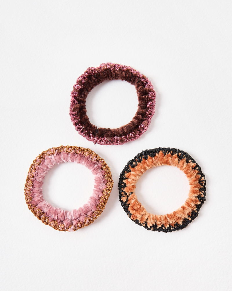 Fletcher Metallic Crochet Scrunchies Set Of Three