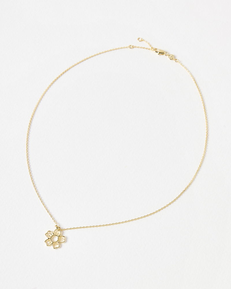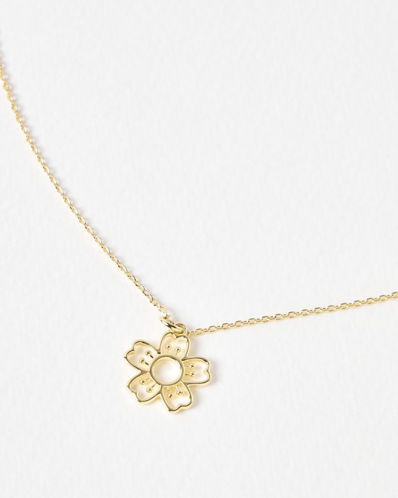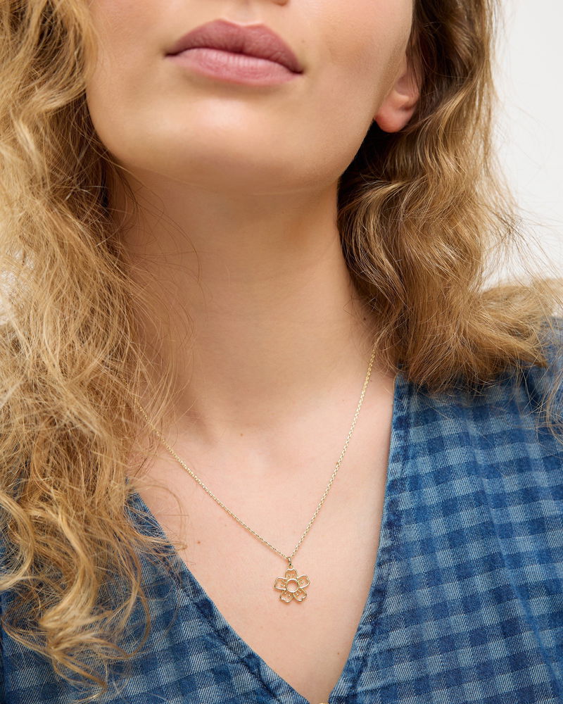 Fleur Flower Outline Charm Gold Plated Pendant Necklace