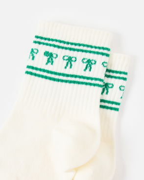Because everyday basics don't have to be basic. Meet our sheer ankle socks knitted with a bright tonal pink floral pattern, featuring solid green toes, heels and trims, for ankles that like to make their own statement.