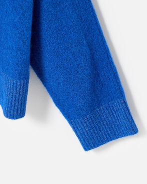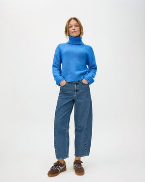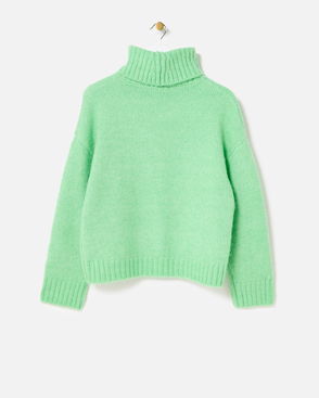 Red funnel neck jumper knitted with a front seam detail, ribbed cuffs and a side split ribbed hem.