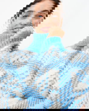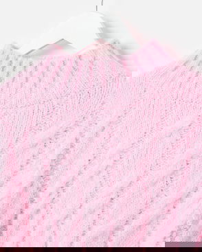 Tonal pink and orange jumper knitted in an abstract geometric pattern, with ribbed trims and relaxed fit.