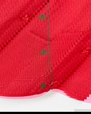 Quilted gilet in a burgundy and white gingham pattern with embroidered detailing and burgundy trims. Designed with two front pockets and hidden popper button closures.