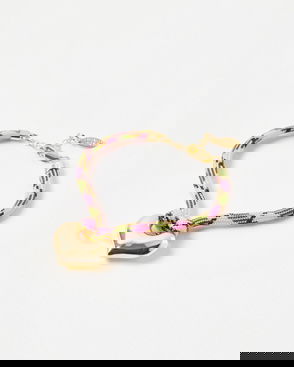 Beaded chain bracelet featuring multiple clear beads, pink beads, gold ball spacers, and an oval faux pearl detail. Finished with an adjustable lobster clasp closure, layer with other beaded chain bracelets or style with a pearl necklace and earrings for a colourful, summer look.