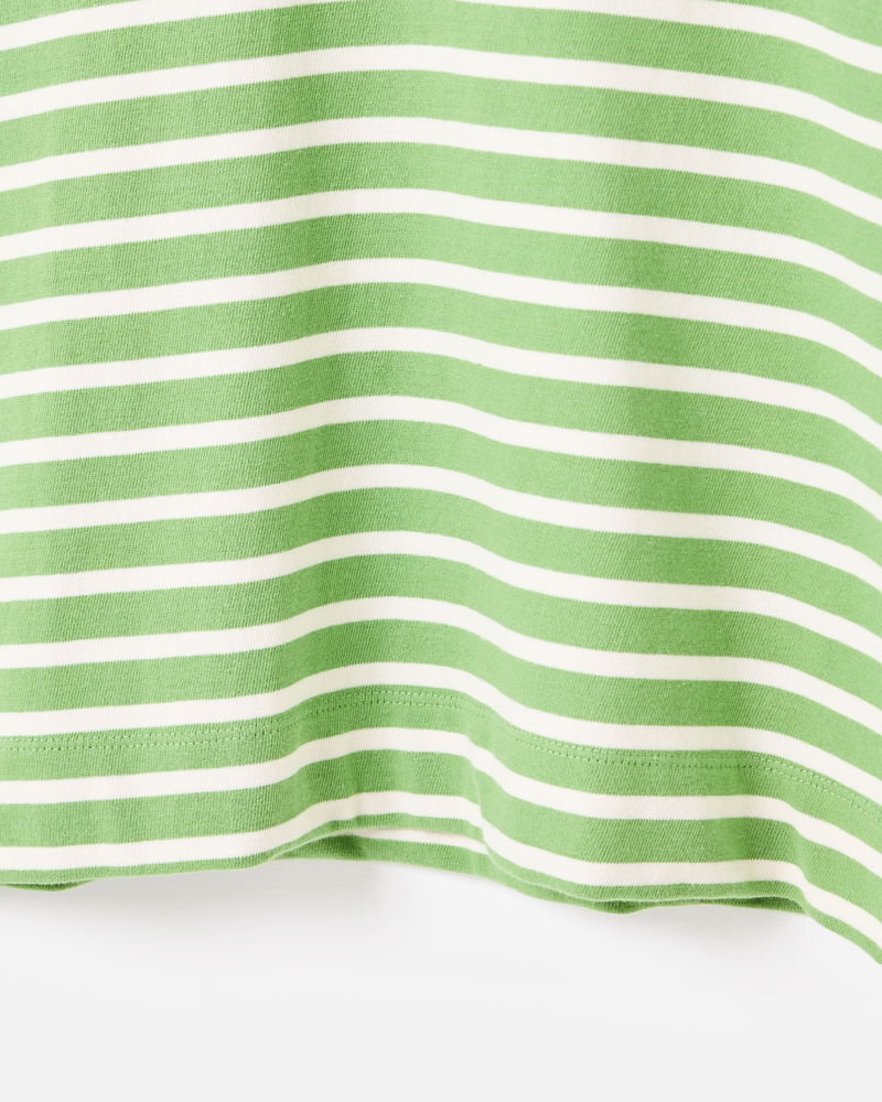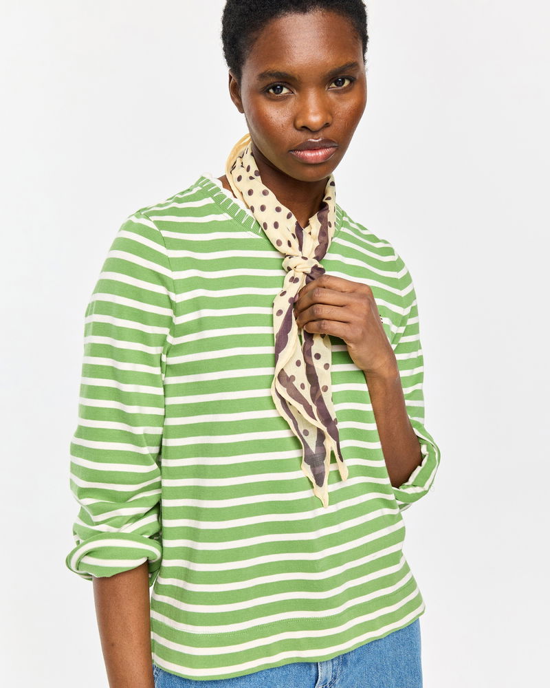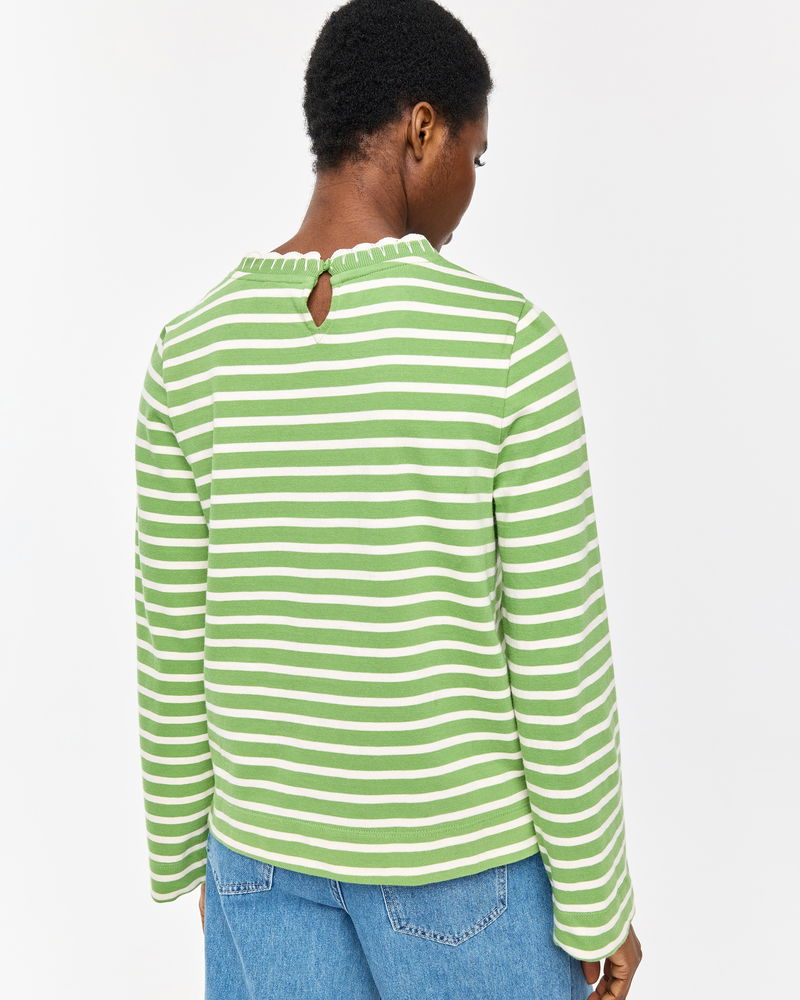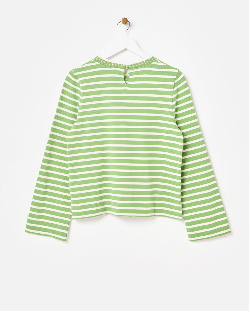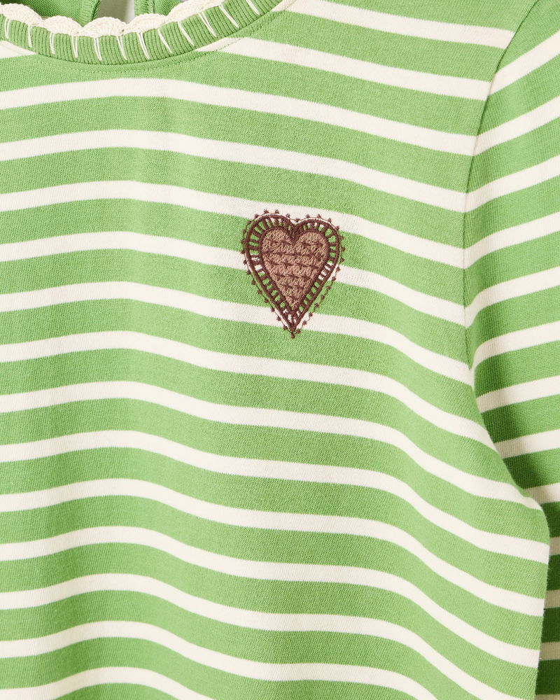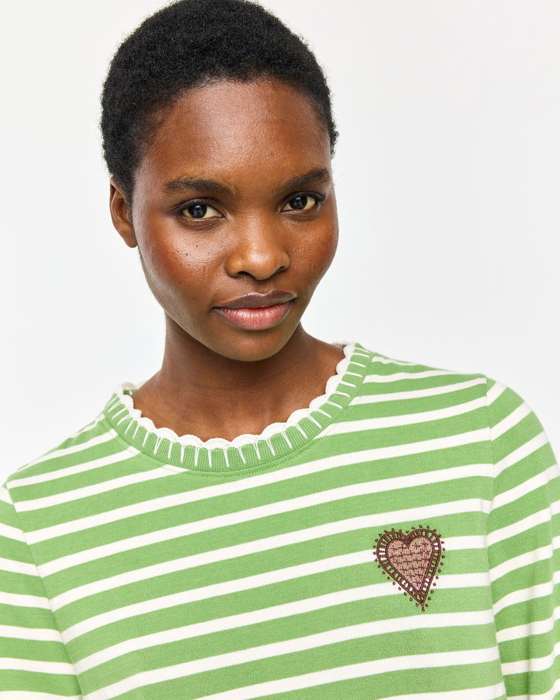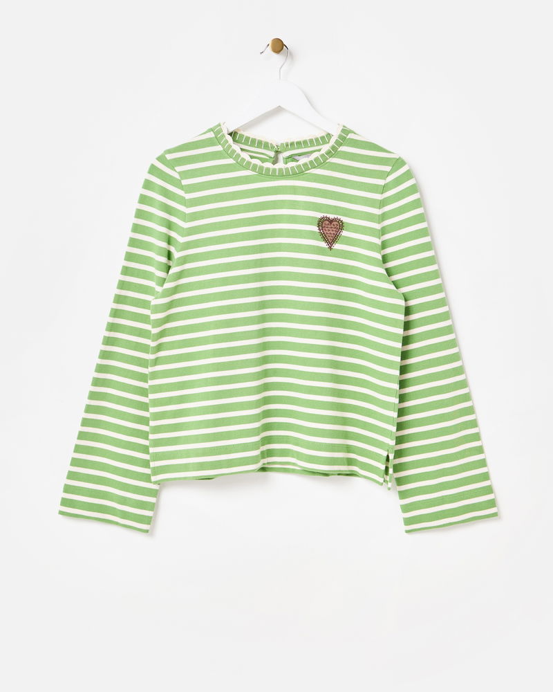 Green & White Striped Heart Embroidered Long Sleeve Top