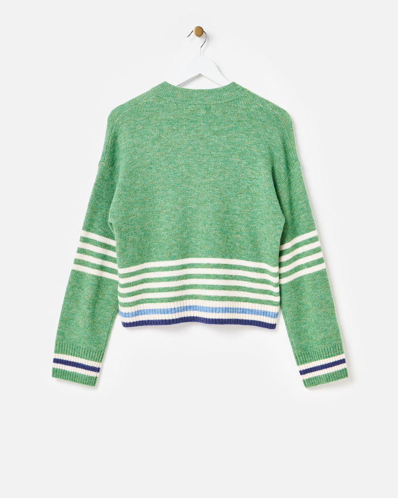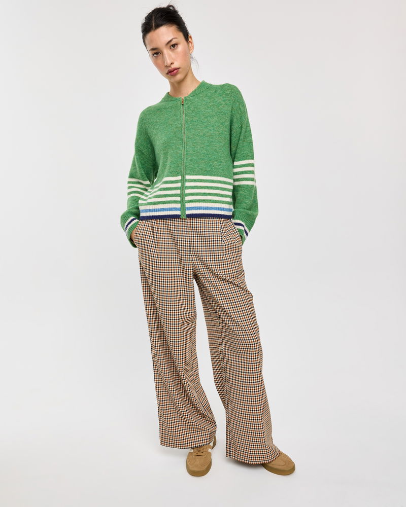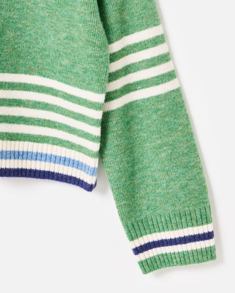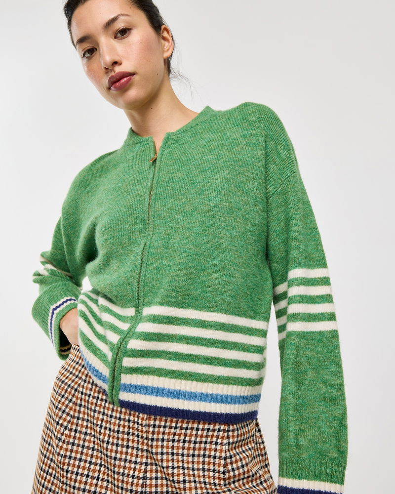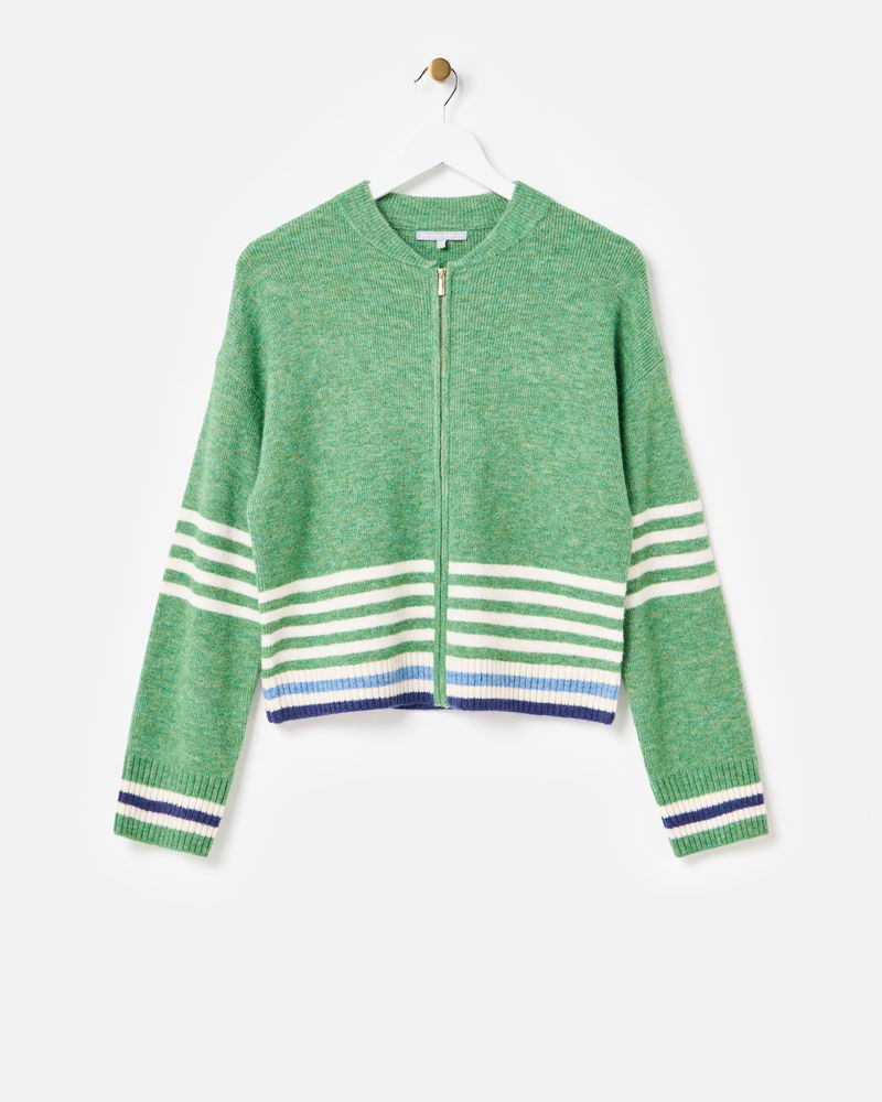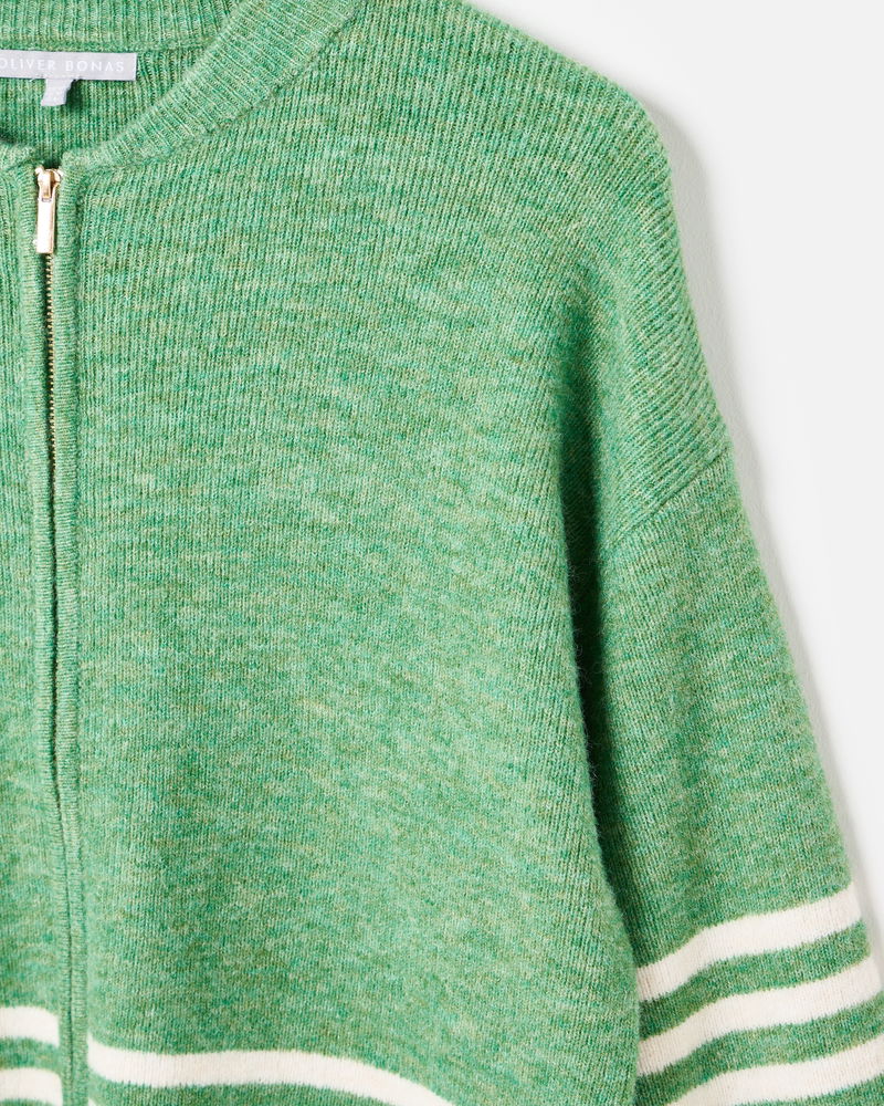 Green & Cream Striped Zip Up Knitted Bomber Jacket