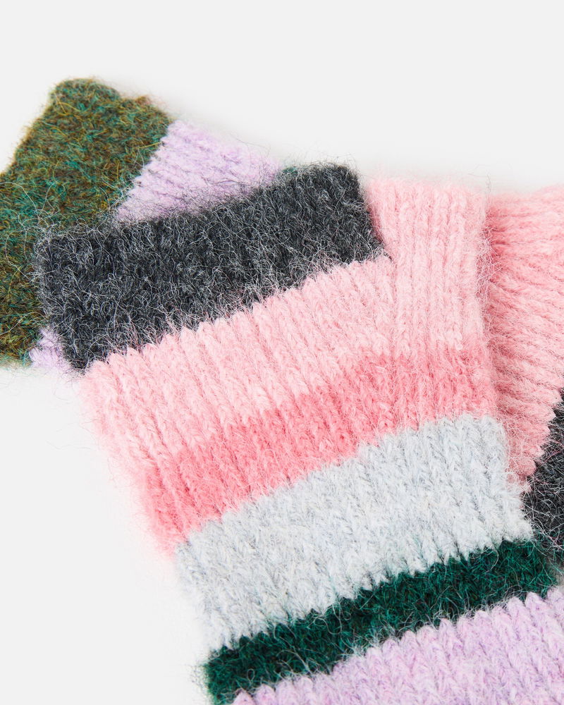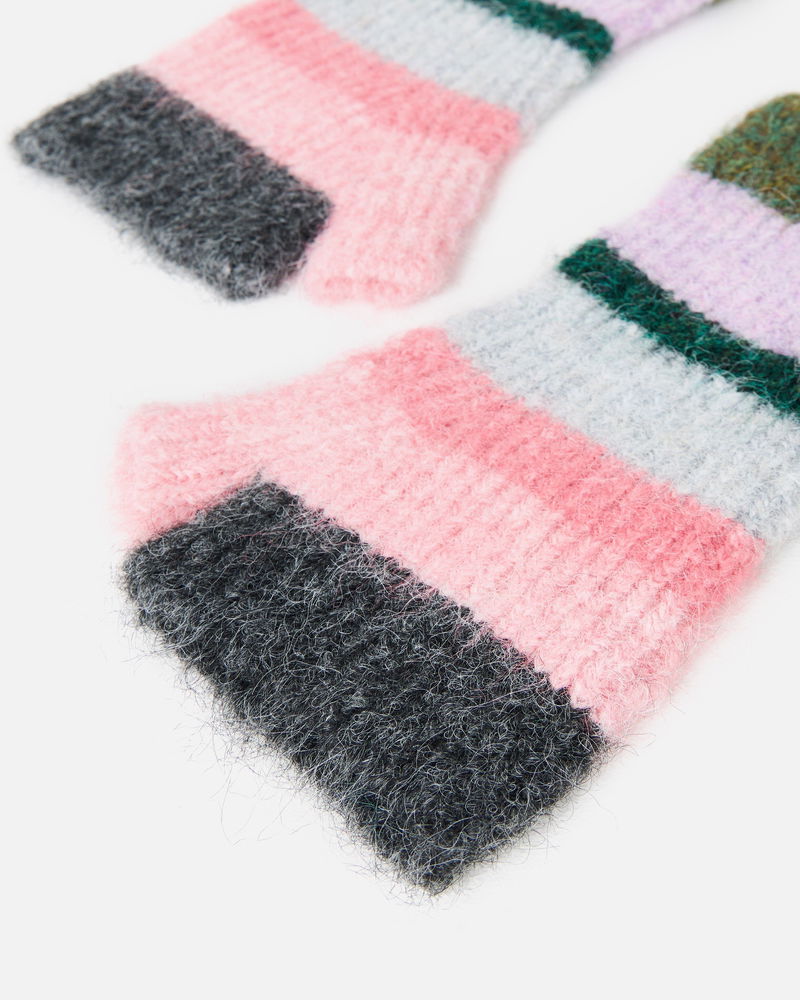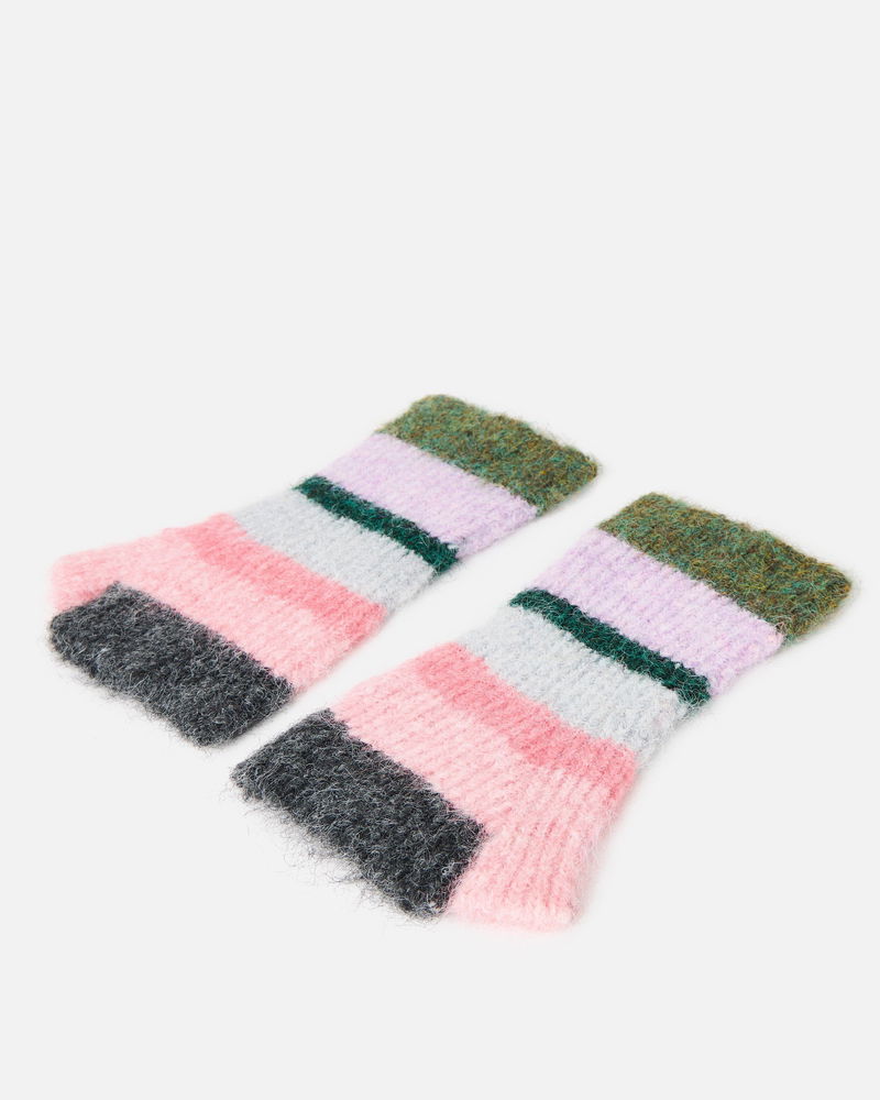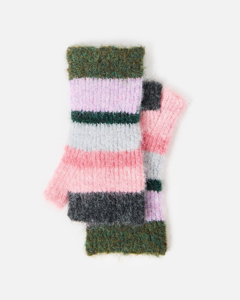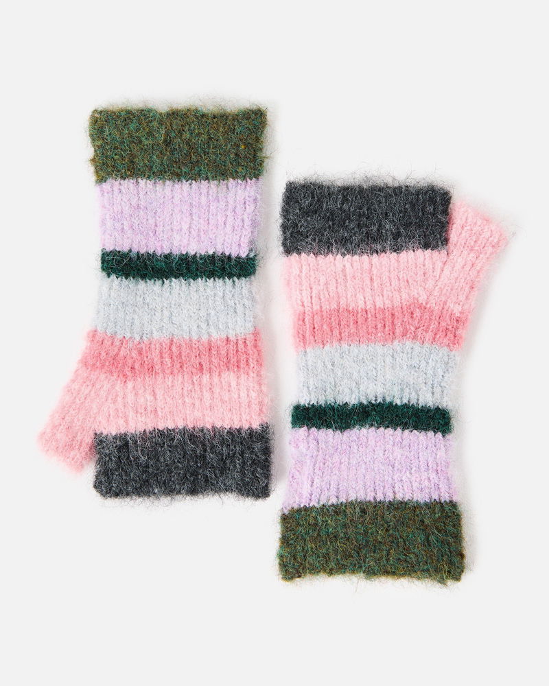 Green & Pink Striped Ribbed Knitted Fingerless Gloves