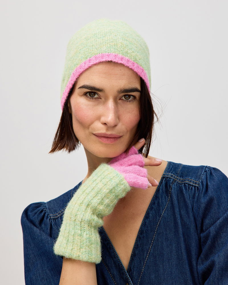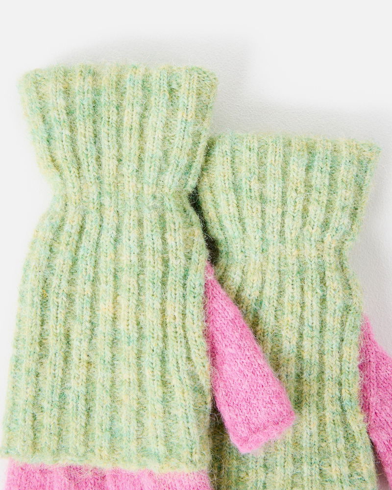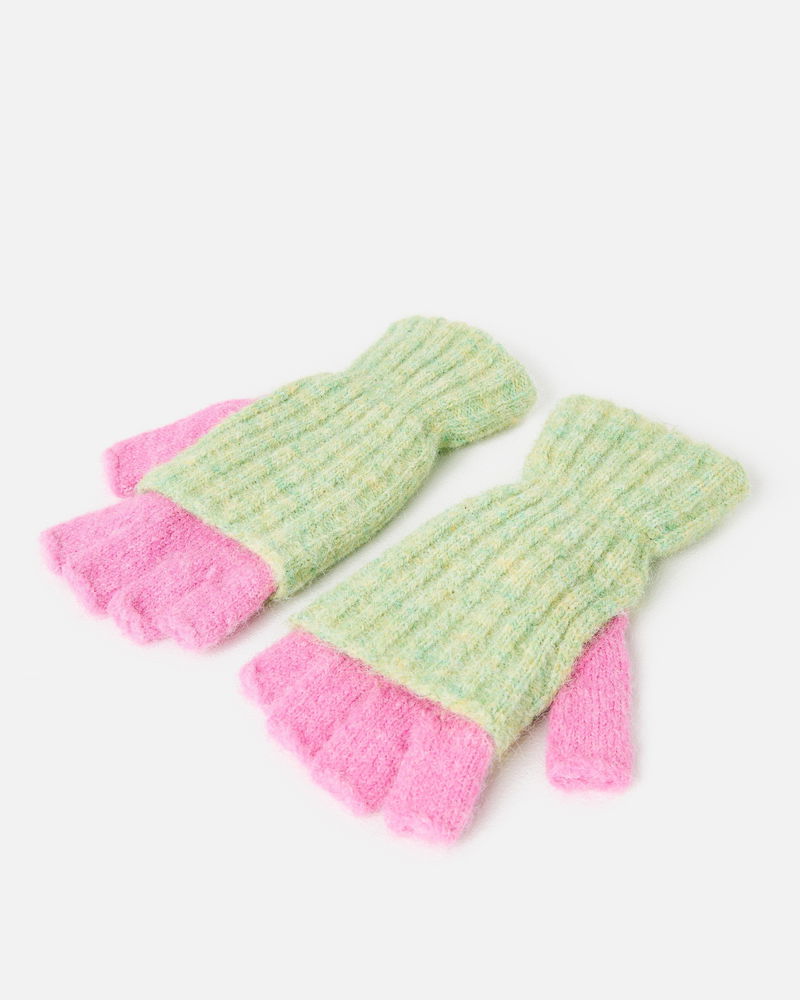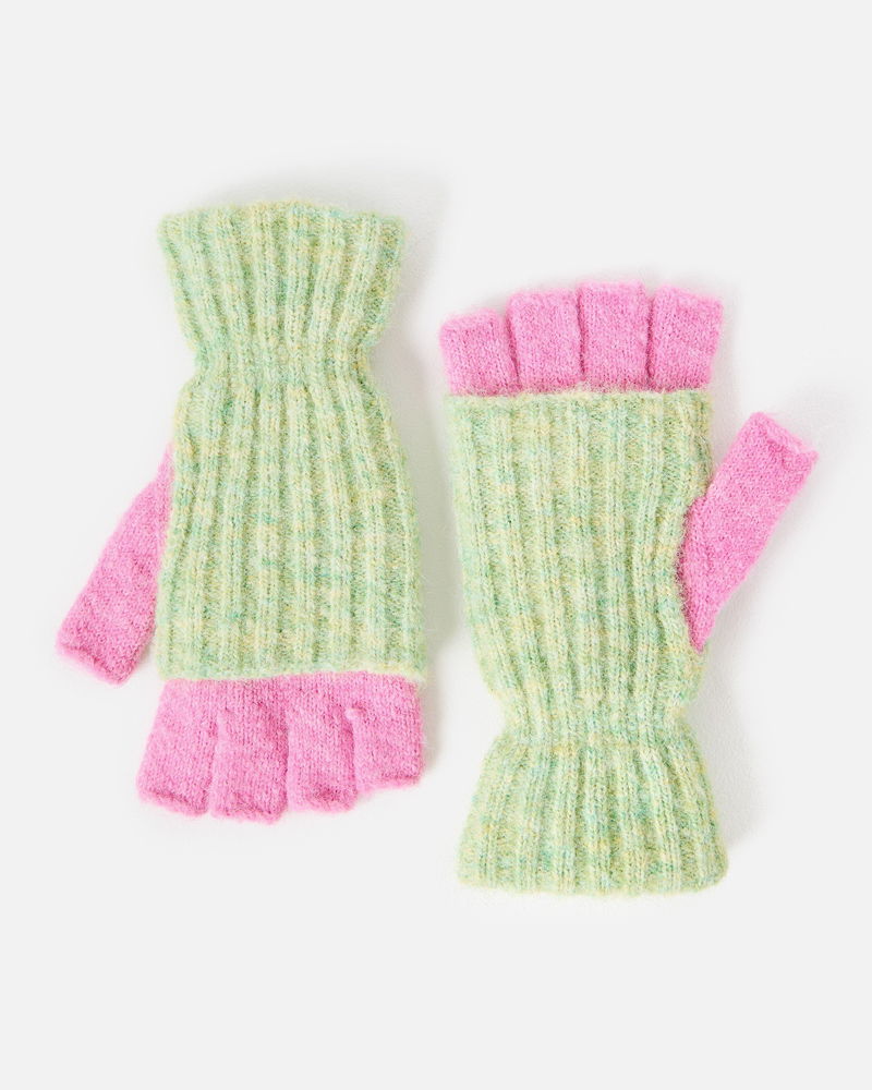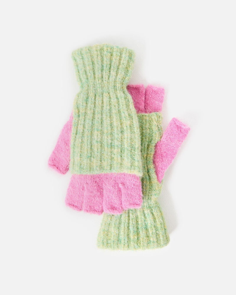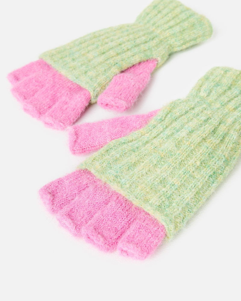 Green Marl & Pink Knitted Fingerless Gloves