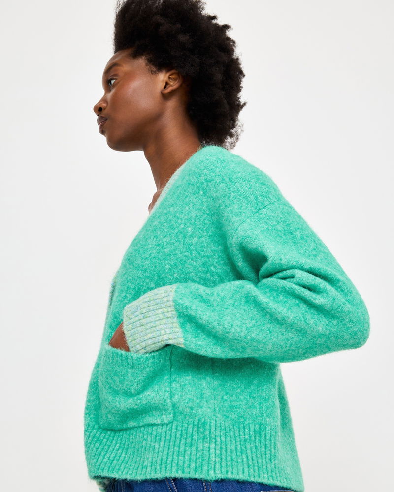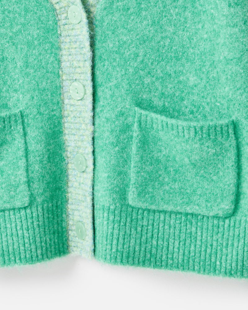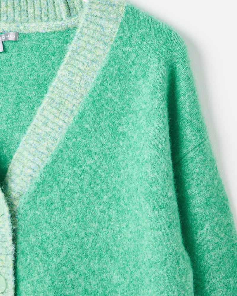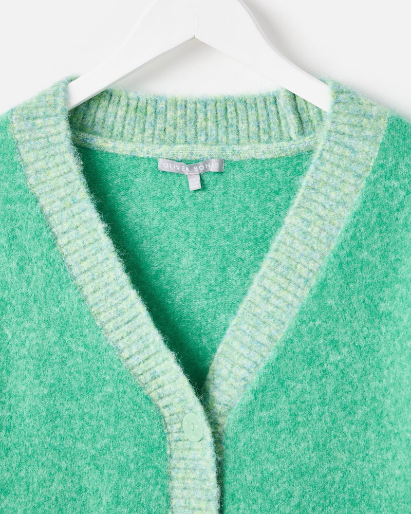 Green V-Neck Knitted Cardigan