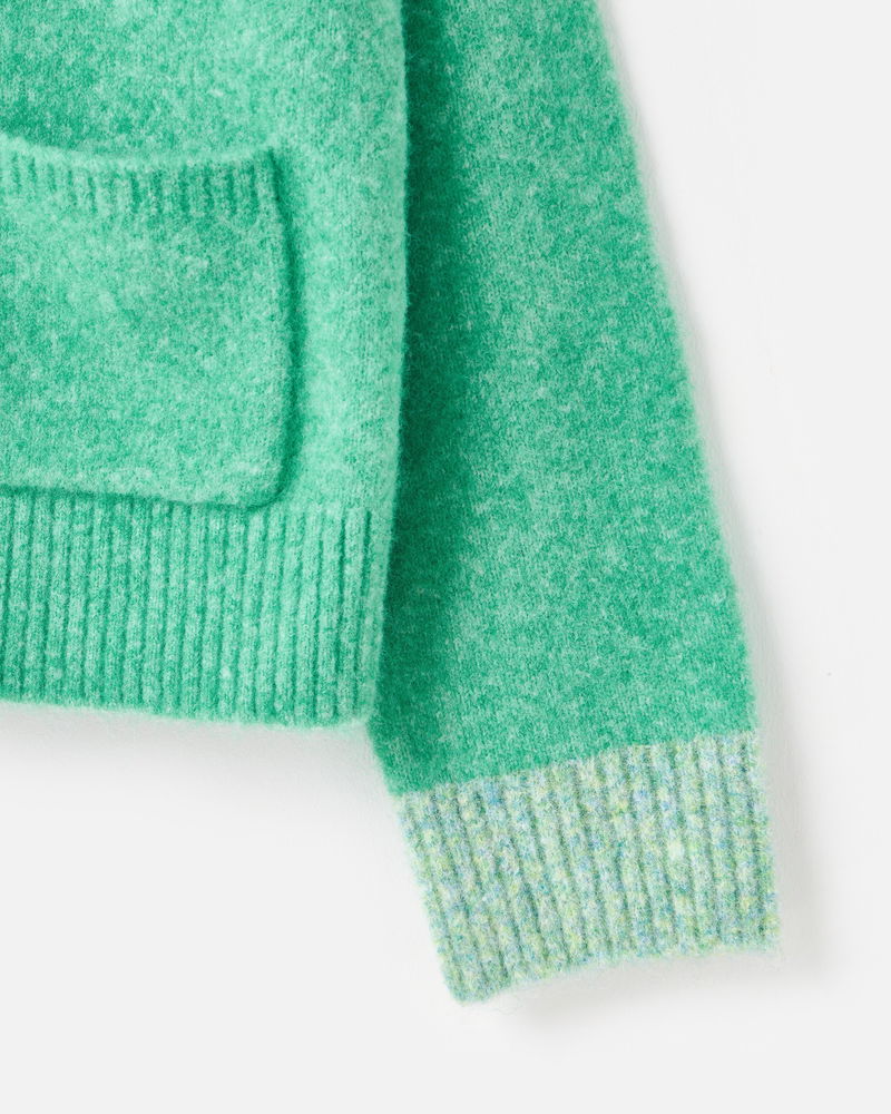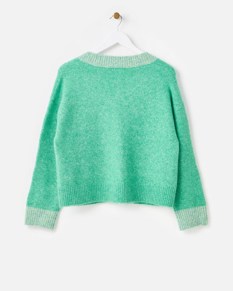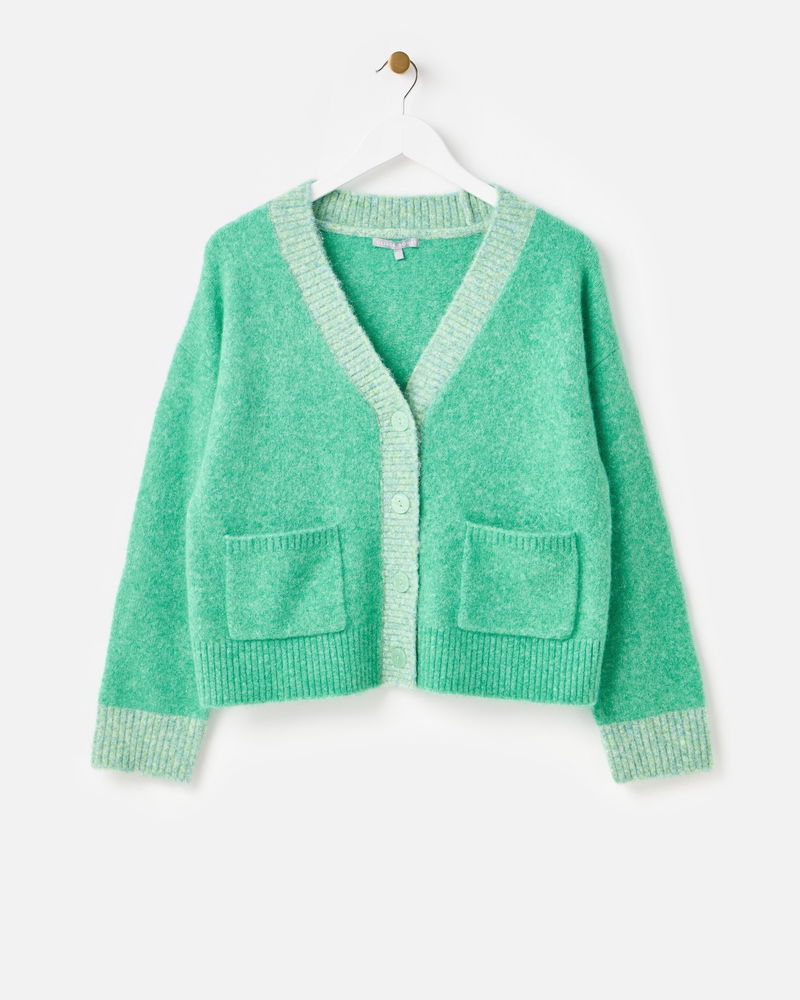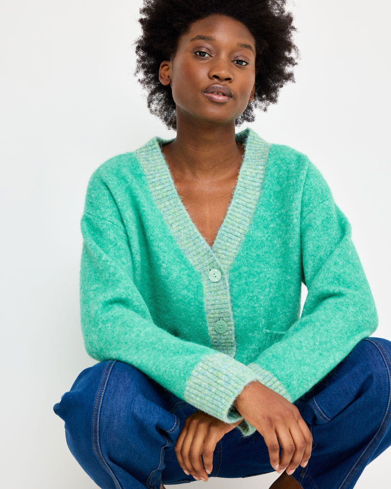 Green V-Neck Knitted Cardigan