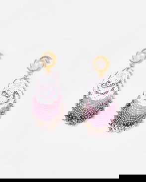 Gold toned hoop earrings embellished with clear baguette stones at the lobe, followed by layered white shell charms and gold bar drops, finished with round faux pearl beads. With a stud back for easy wearing, style these statement pearl earrings with a pearl necklace and bracelet for an elegant look, perfect for wedding guest outfits and special occasions.