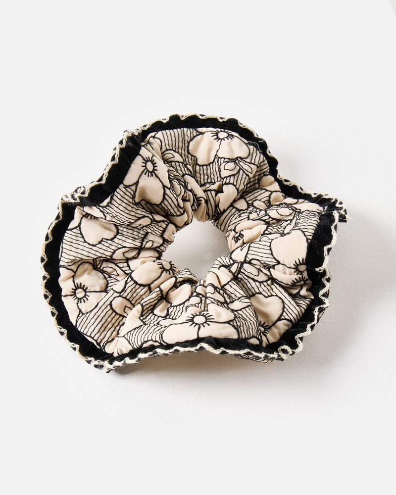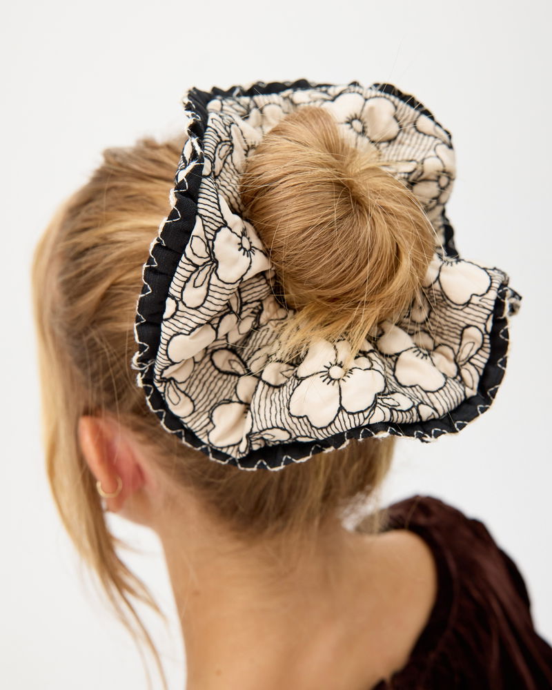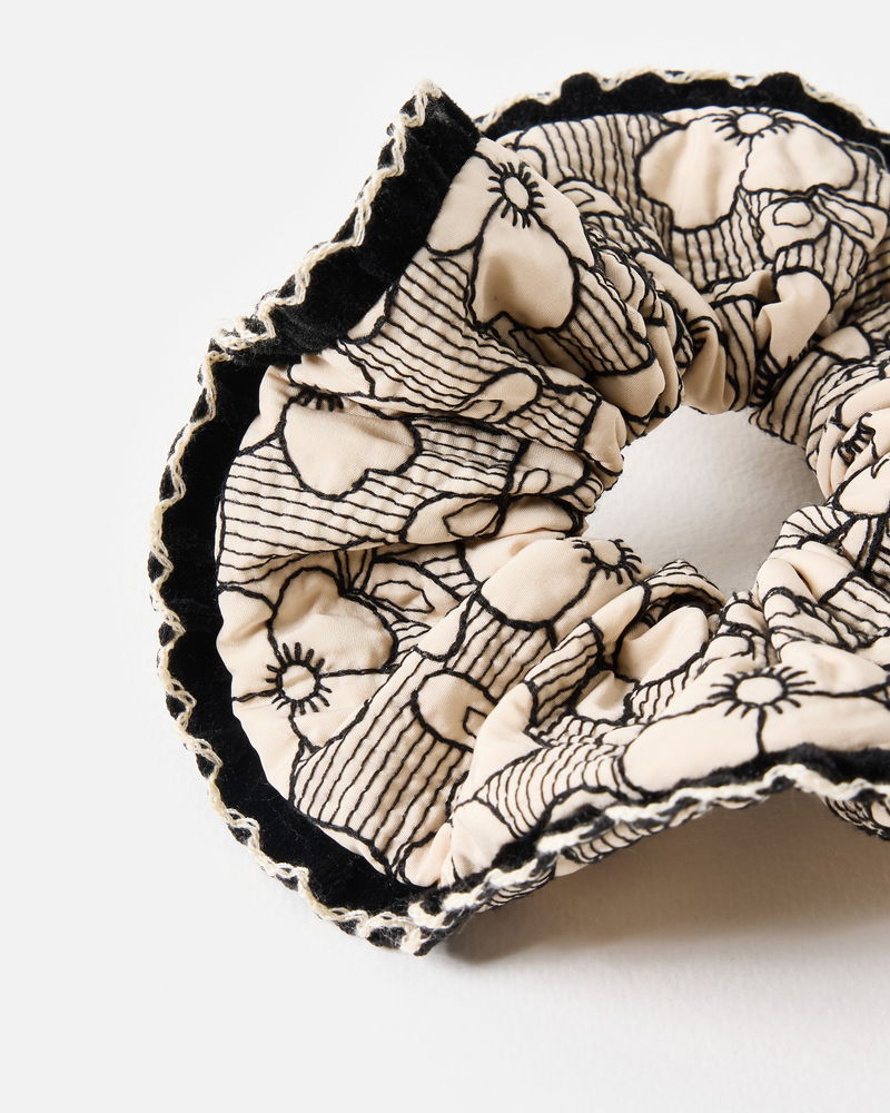 Harlow Embroidered Flower Frill Edge Scrunchie