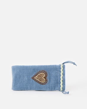 Cream glasses case with a black heart print designed in the OB creative studios, and a soft pink lining.