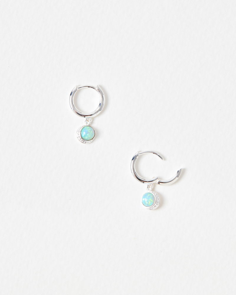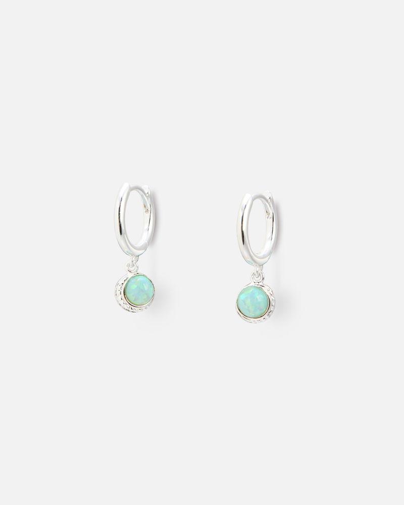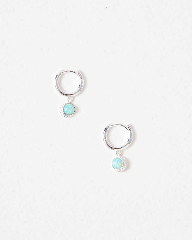 Hilal Opalite Crescent Moon Silver Hoop Drop Earrings