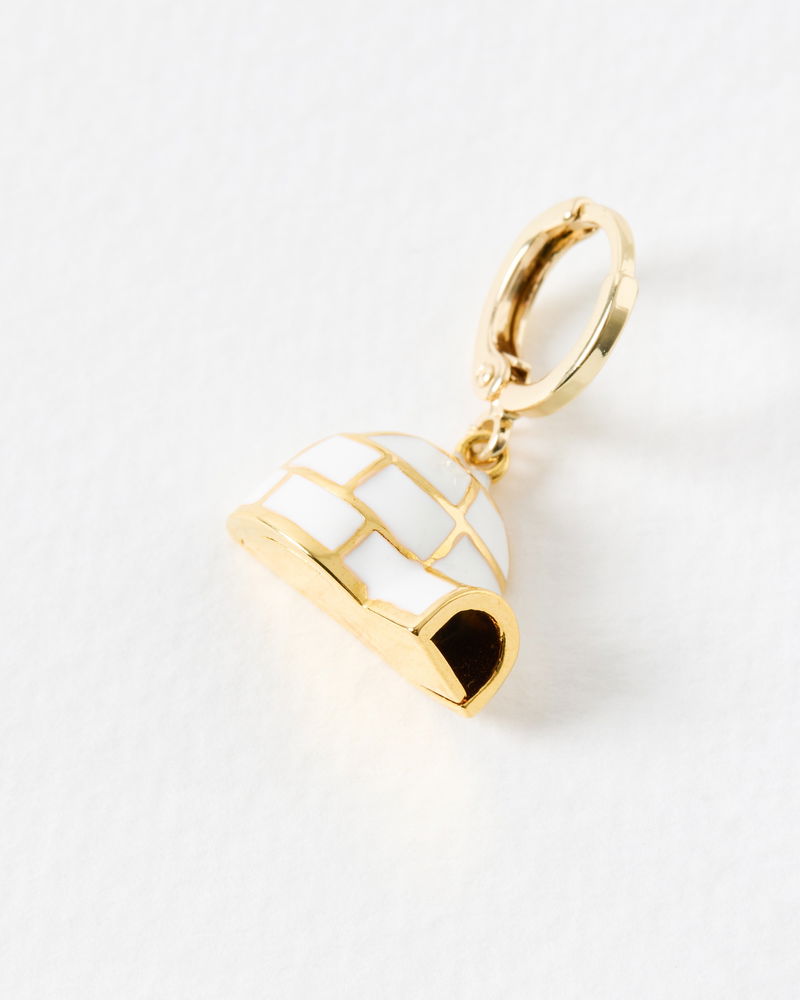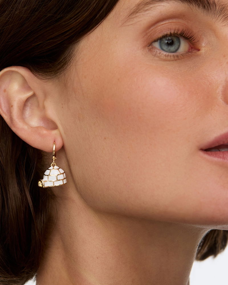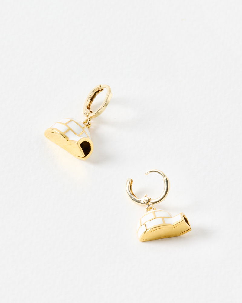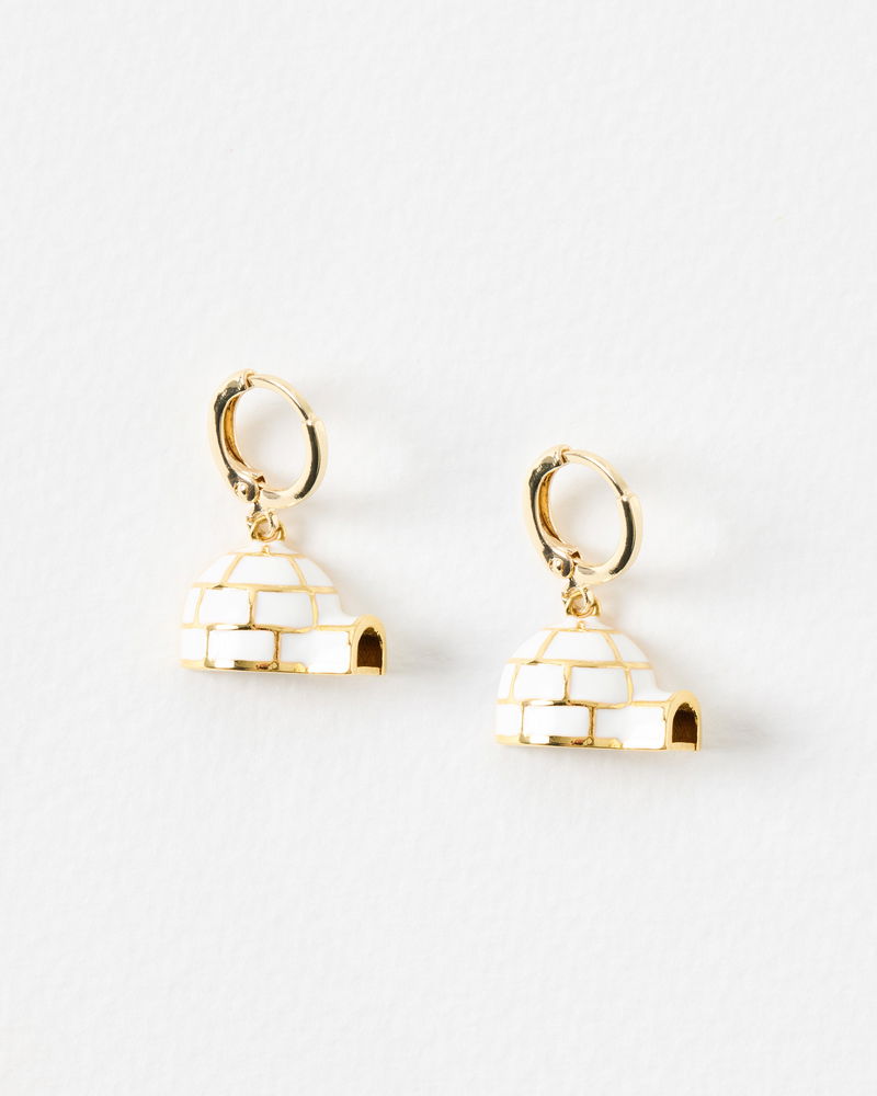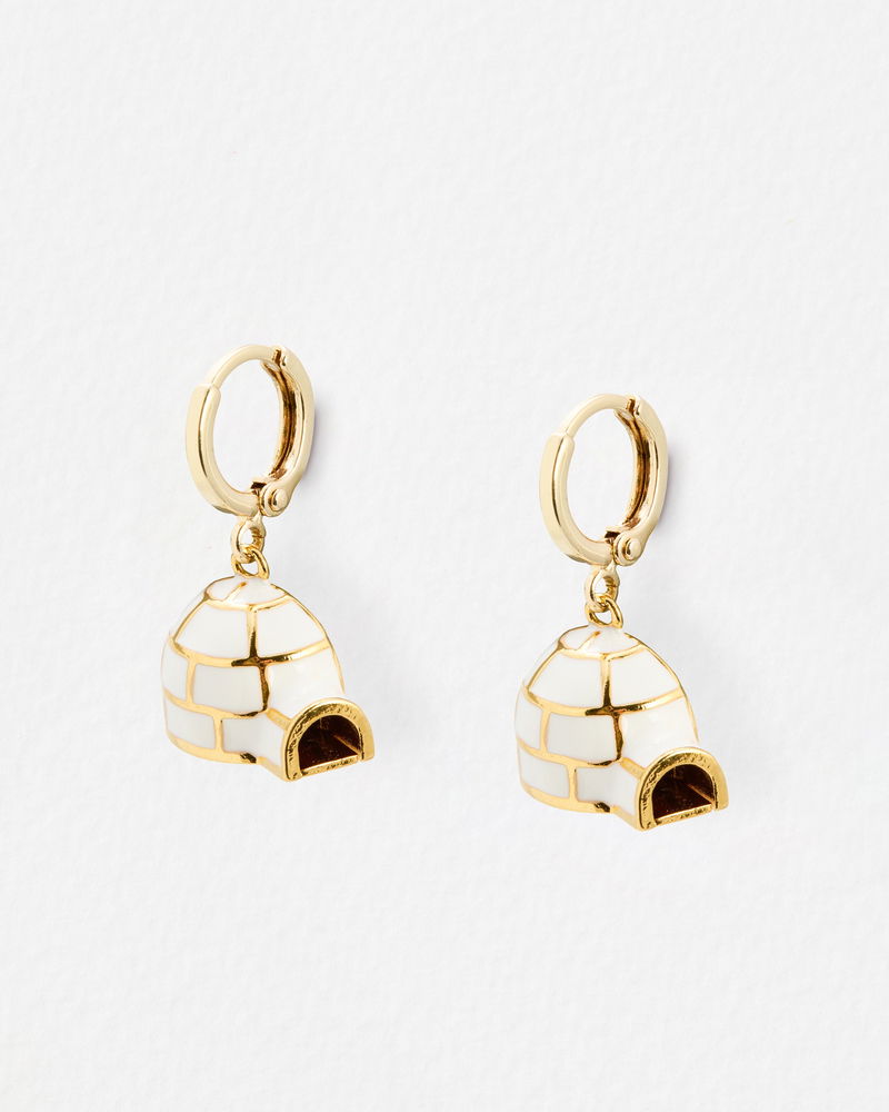 Add a playful choice to your jewellery box with these gold toned huggie earrings, suspending an enamel igloo charm for a fun winter touch.