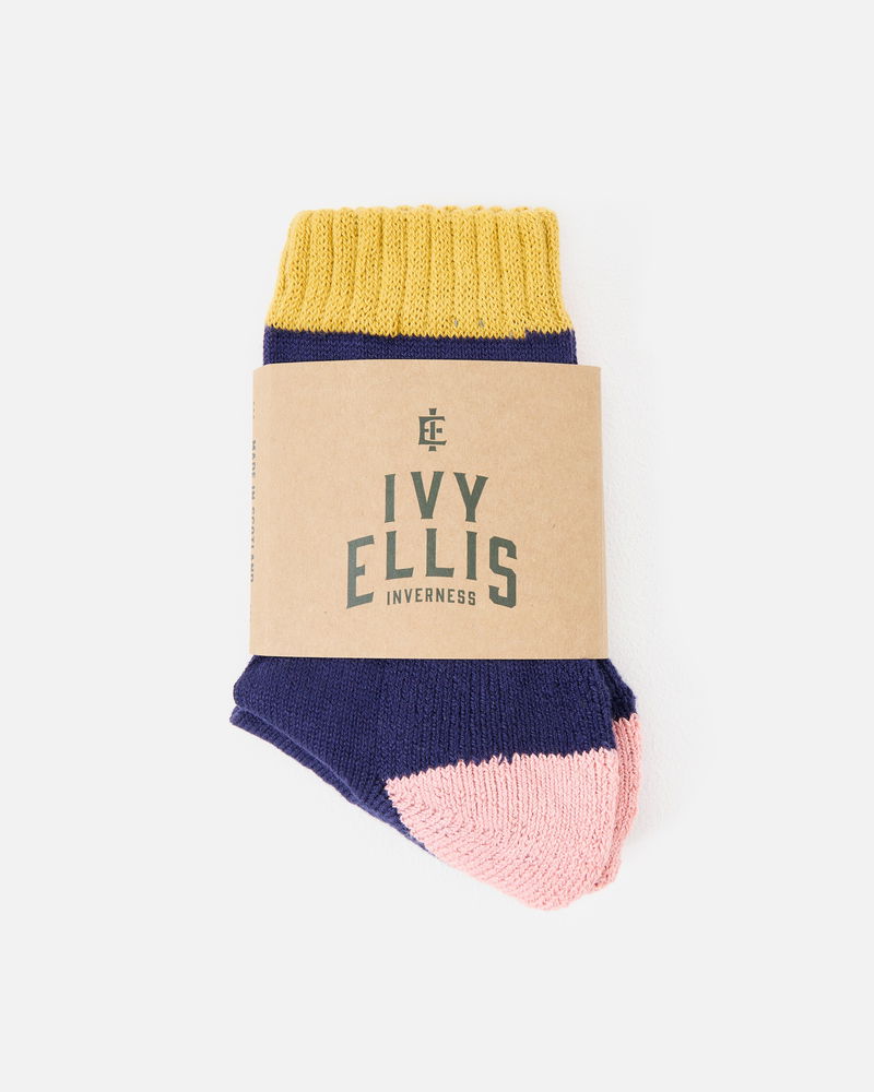 Ivy Ellis Wallace Navy Blue & Pink Ankle Socks