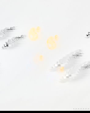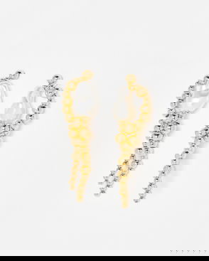 In an elegant drop profile, these dainty drop earrings suspend a series of pearls from interlocked golden bars.