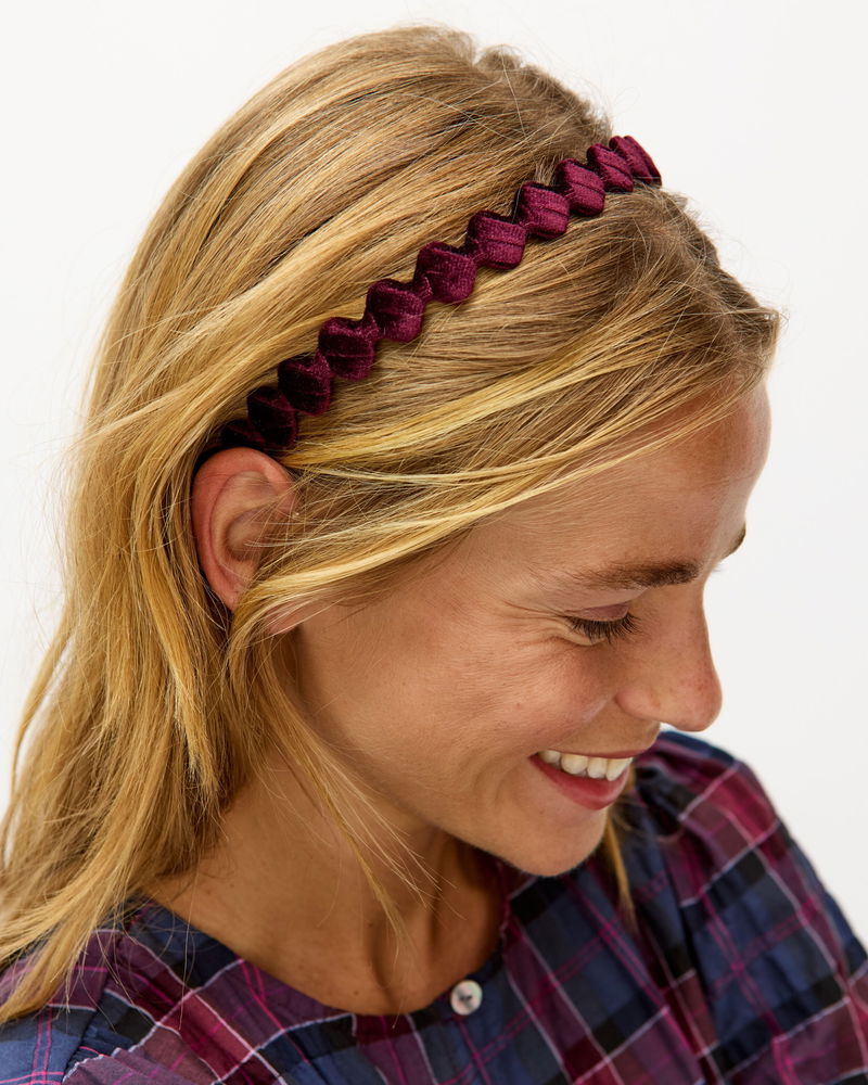 Designed in an easy-to-wear slim profile and wavy shape, we've finished this headband with a classic red velvet for easy styling.