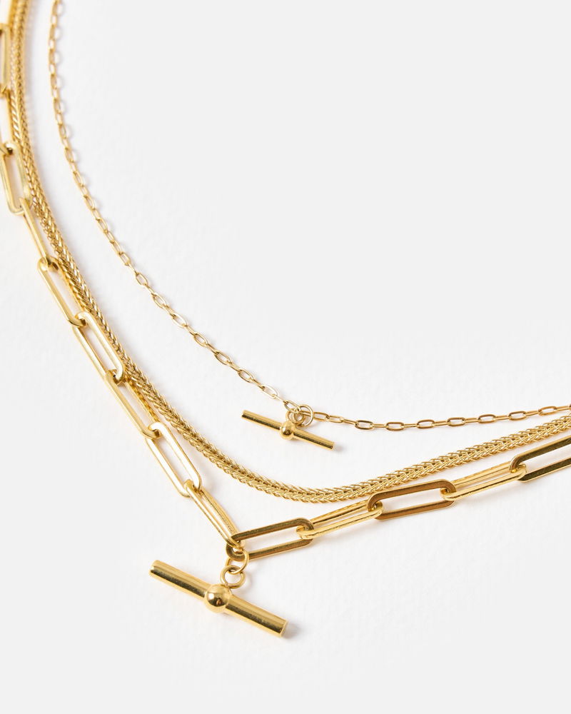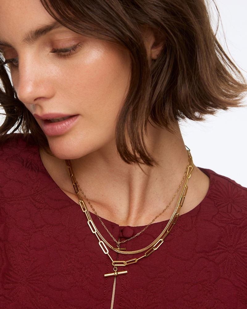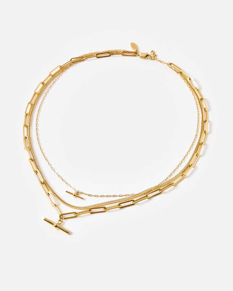 Joni Gold Tone Waterproof T-Bar Pendant Layered Chain Necklace