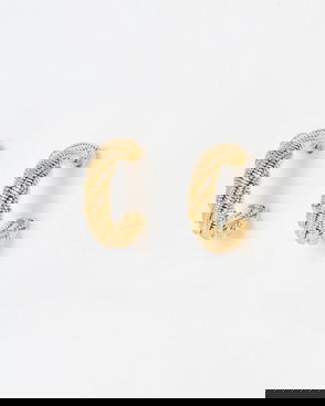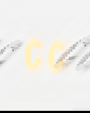 Large gold tone hoop earrings in a wide profile, with etched vertical lines creating a ribbed effect along the hoops. Secured with a stud earring back, these gold hoop earrings are great for summer styling and workwear, and can easily be styled smart or casual for effortless day-to-night looks.