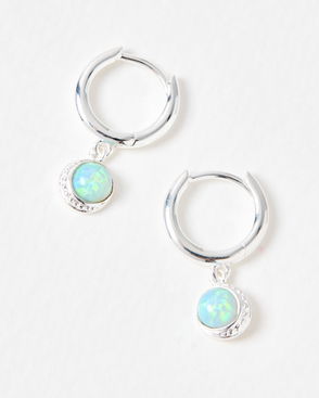 This pair of silver, stud-back earrings are in the profile of tiny rockets with a bright blue opalite stone at the centre.