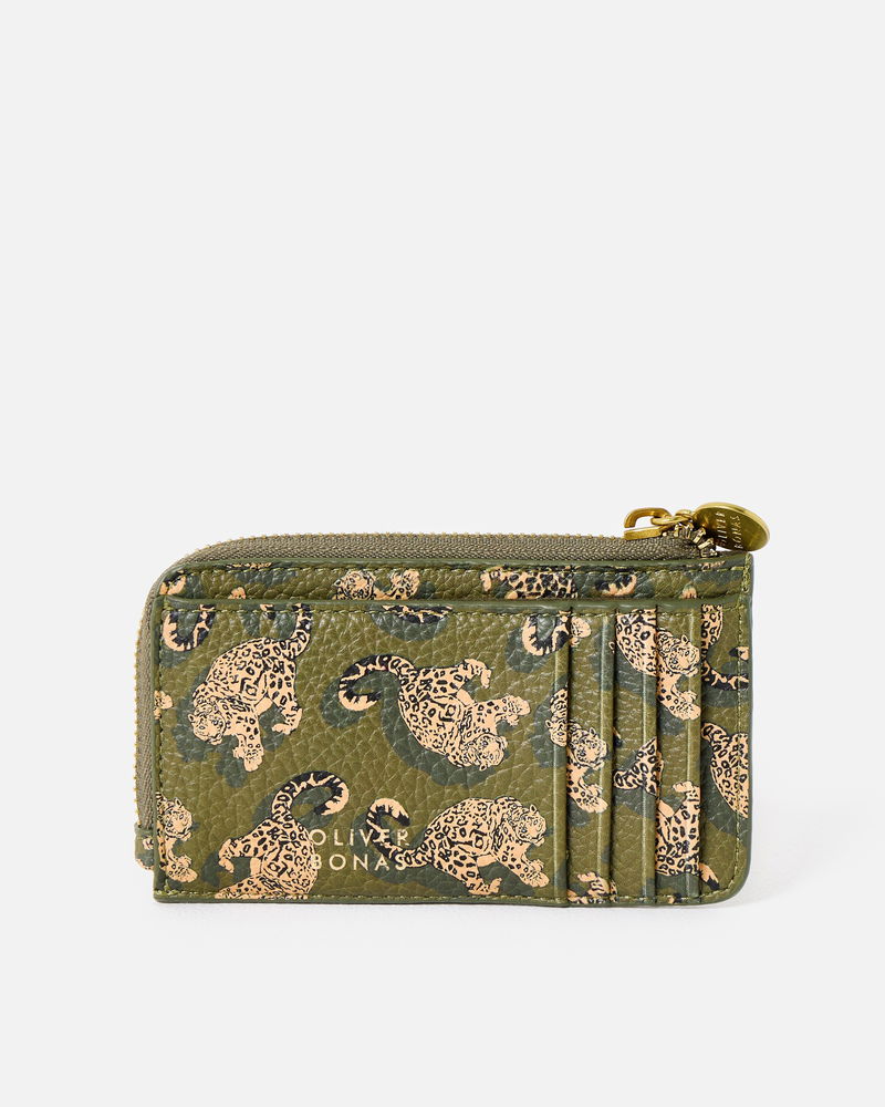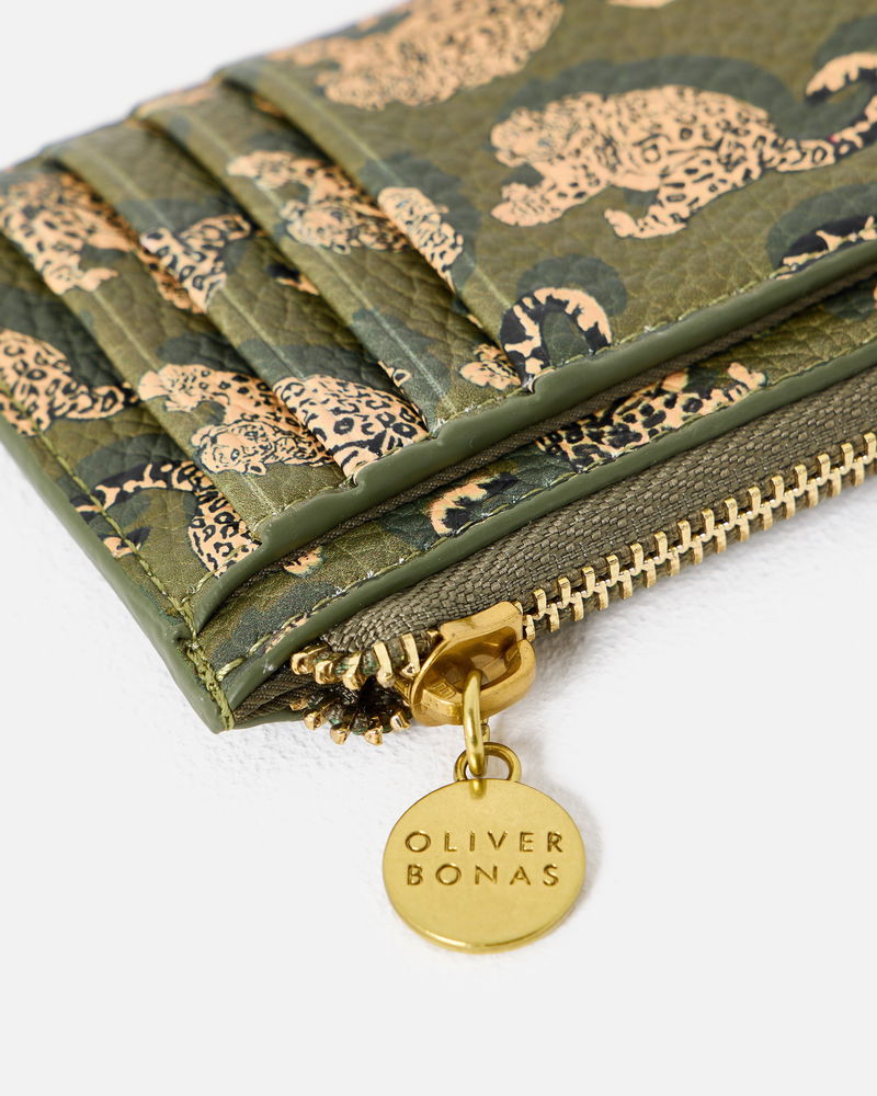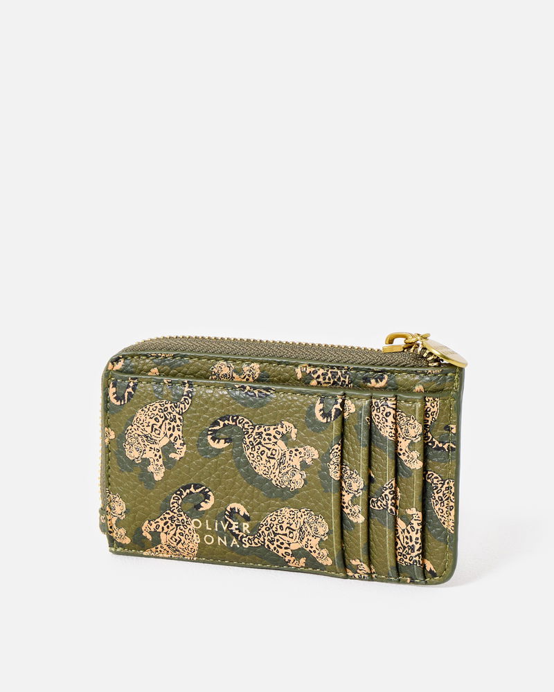 Khaki Green Snow Leopard Zipped Card Holder