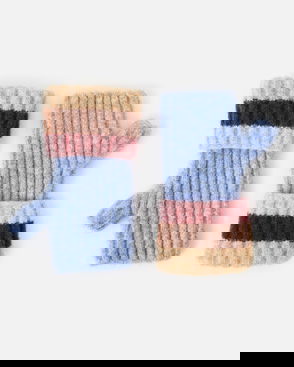 Fluffy fingerless gloves knitted in a cobalt blue yarn, with a fold-over mitten fastening.