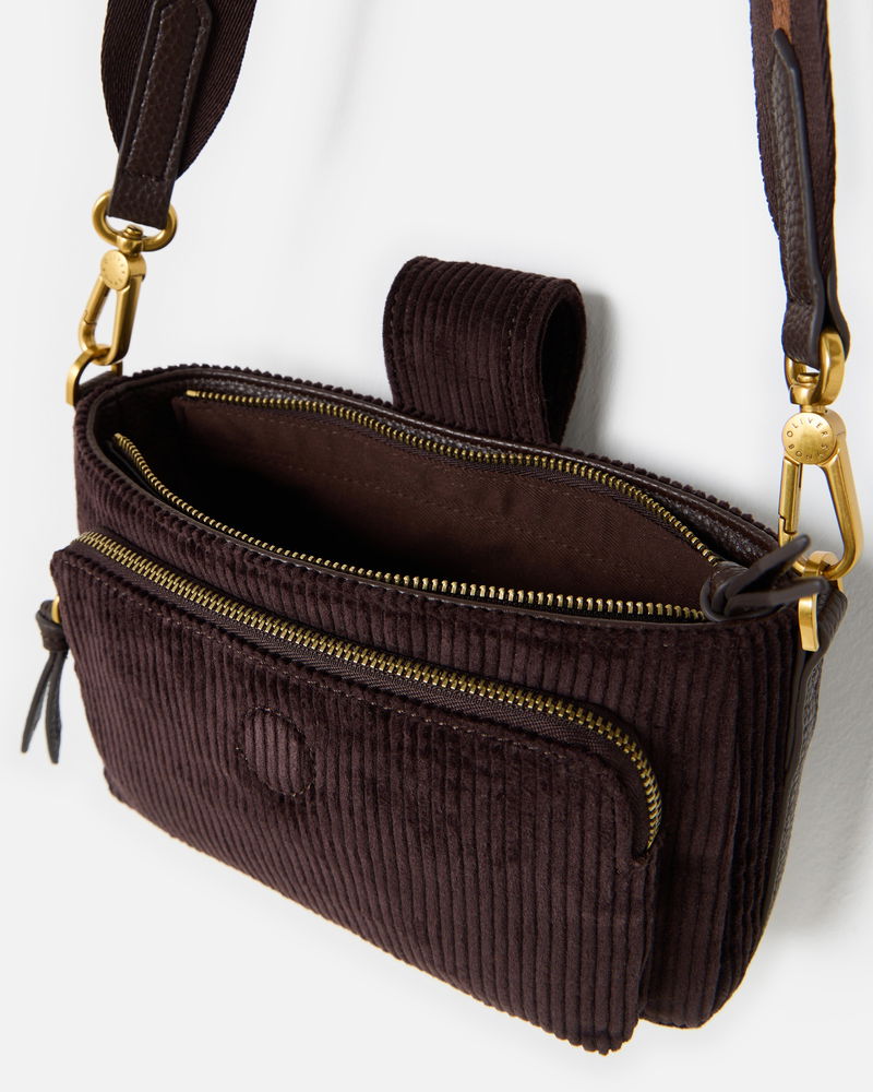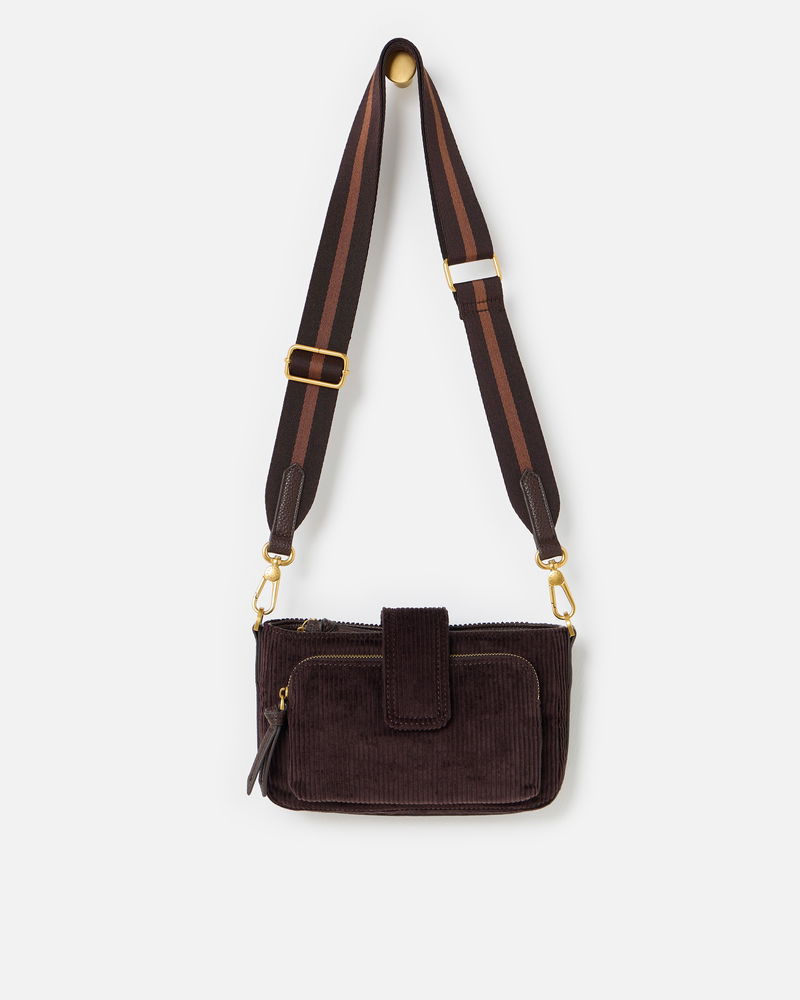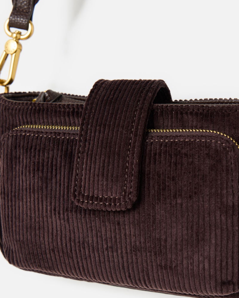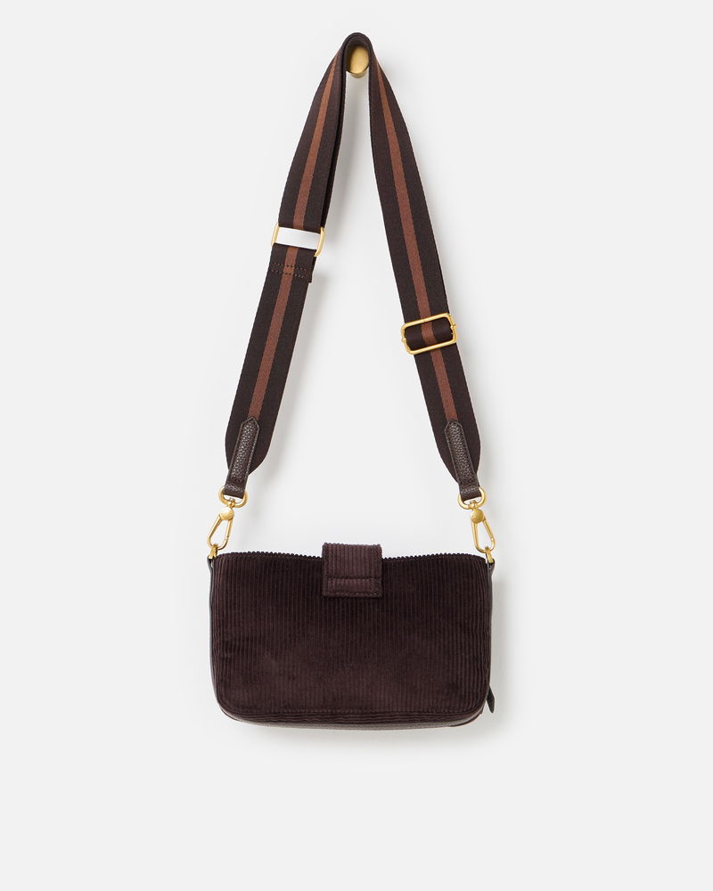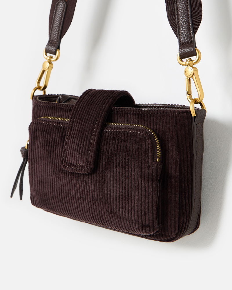 Laura Chocolate Brown Corduroy Crossbody Bag