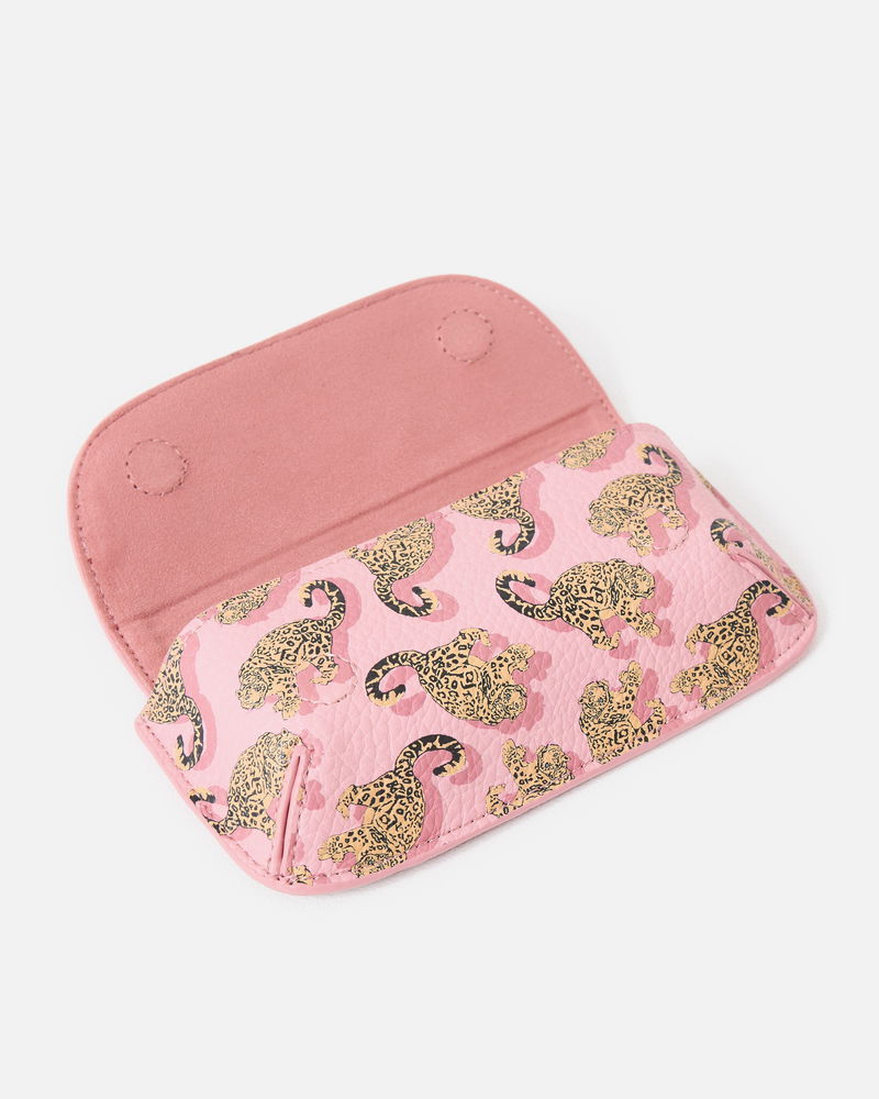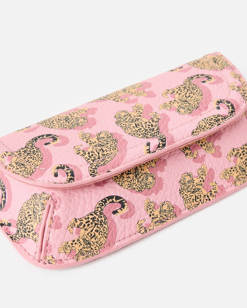 Keep your sunglasses protected and scratch-free with our light pink glasses case printed with a snow leopard pattern designed in the OB creative studios. We've added a soft pink lining and a concealed magnetic closure for on-the-go convenience.