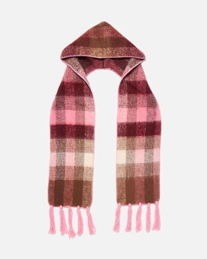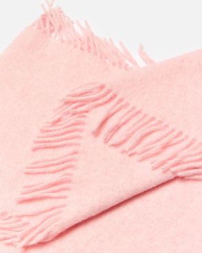 Pale pink scarf knitted in a super soft yarn with extra long tassel trims.