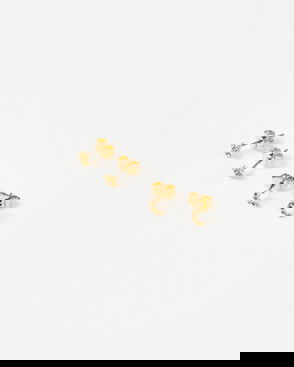 Mini stud earrings with a black stone and fan silhouette formed from small silver gems.