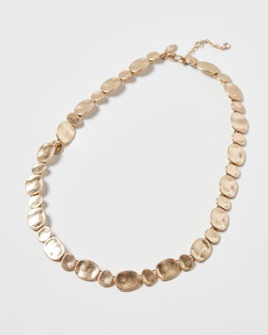 In a matte, hammered metal finish, this statement necklace features a silver-toned pebble link design, threaded through a fine chain, finished with a lobster clasp fastening.
