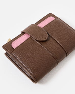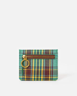 Green zip around purse with a contrasting pink lining, coin pocket and embossed OB logo.