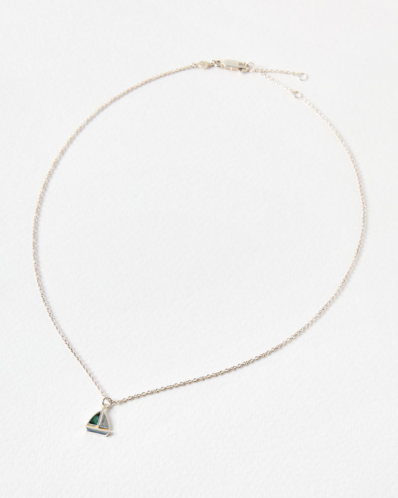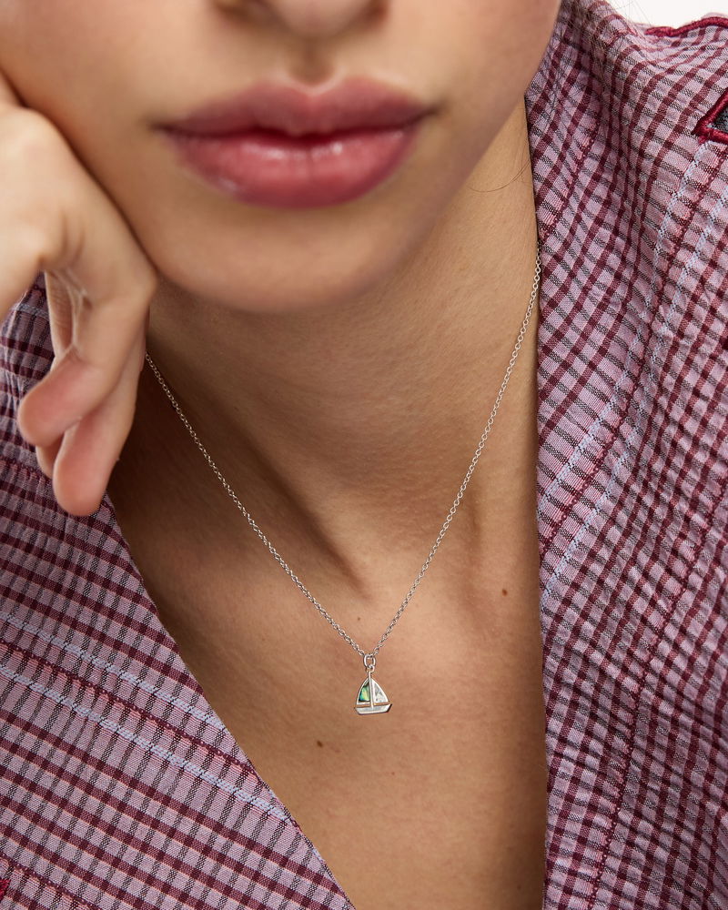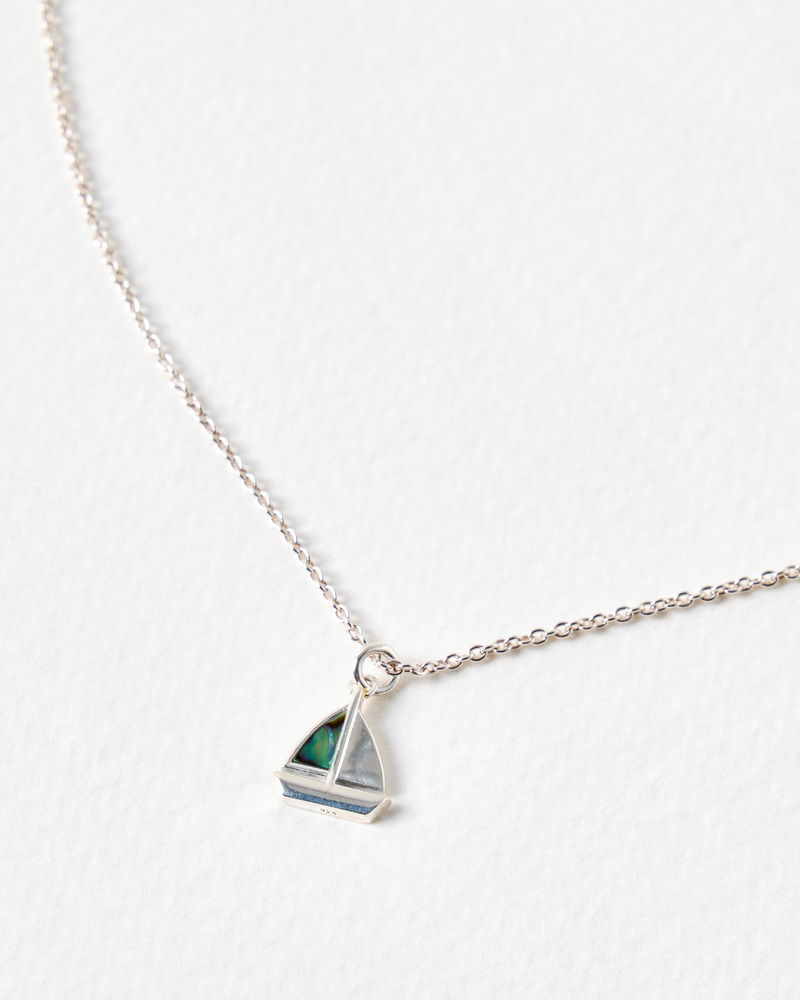 Marina Paua Shell Sailboat Silver Pendant Necklace