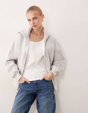 Lilac marl sweatshirt with drop shoulders, ruched gathers on the cuffs and a relaxed fit.