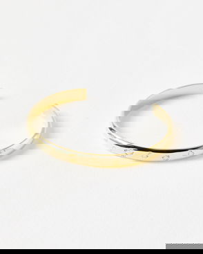 This gold-toned cuff bangle features a twisted band, complete with a hinged clasp.