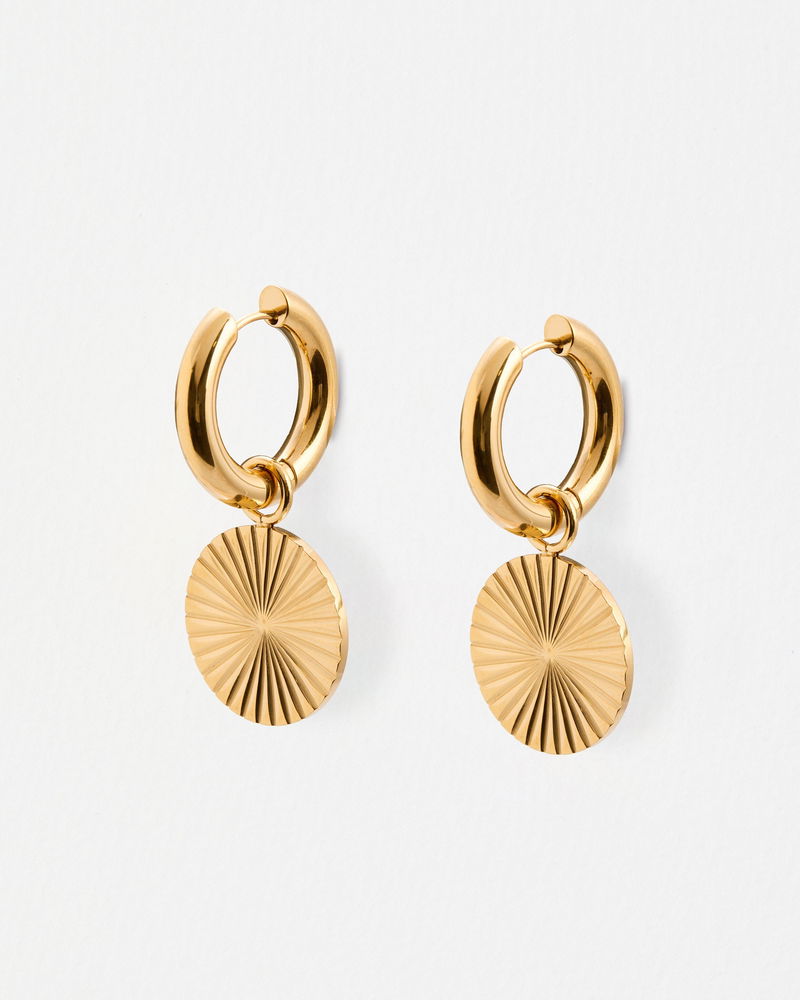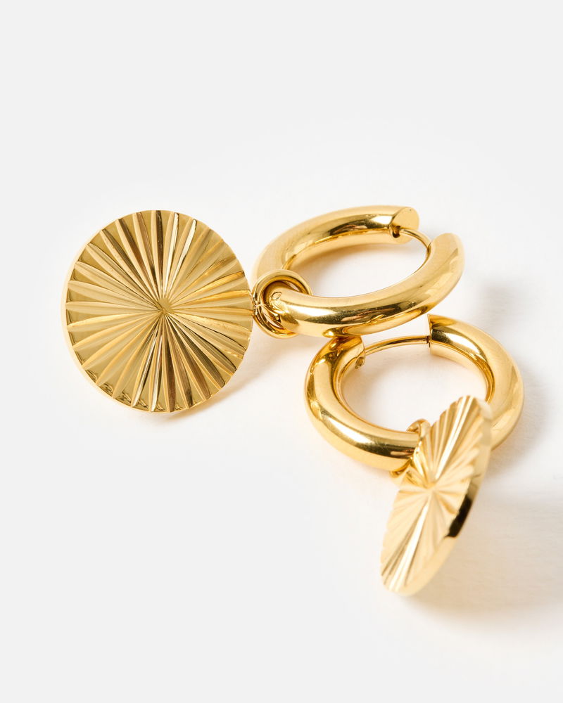 Maya Gold Tone Waterproof Disc Drop Hoop Earrings