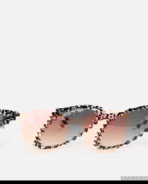 Oversized sunglasses with round lenses and a brown frame with gold metal details.