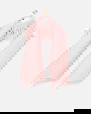Pairing a vibrant pink hue with a soft blush in a colour block design, this midweight blanket scarf is complete with a tassel trim.