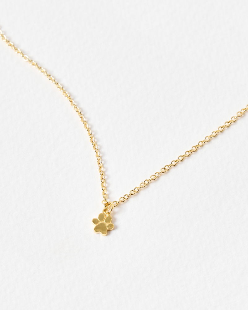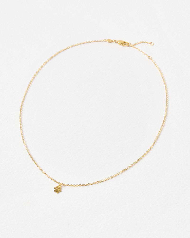 Delicate gold plated chain necklace with dainty links and a playful paw charm. The perfect gift for the dog-obsessed.