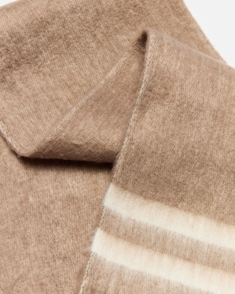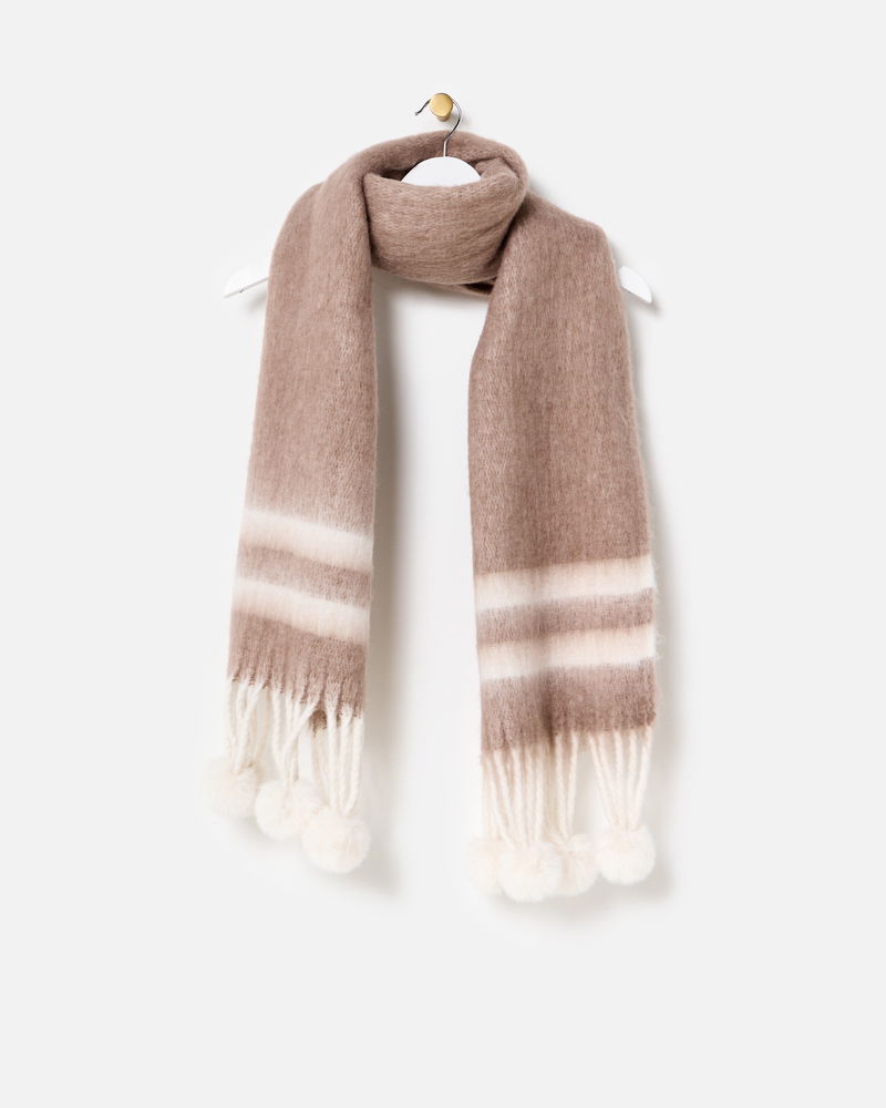 Mocha Brown & Cream Striped Pom Pom Heavyweight Scarf