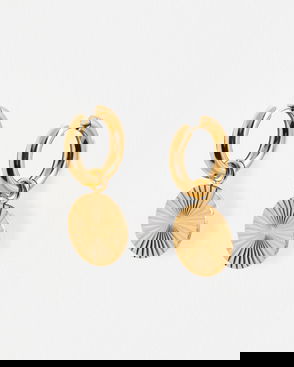 Anchored by gold-toned discs in a matte finish, these drop earring feature small organic-shaped bars and butterfly back fastenings.