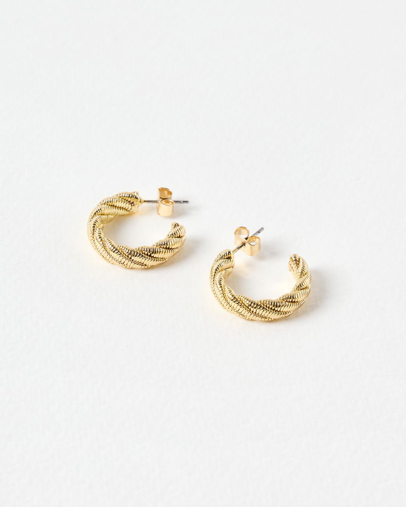 Nella Textured Twist Gold Tone Hoop Earrings